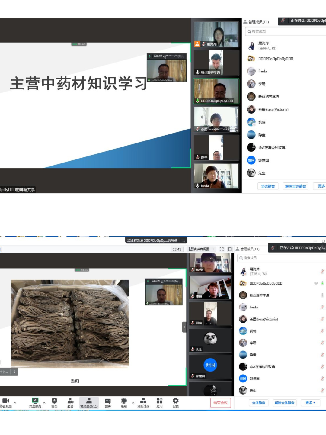 同時(shí),公司本周連續(xù)五天安排了“走進(jìn)新絲路”、“產(chǎn)品境外注冊(cè)業(yè)務(wù)之俄羅斯注冊(cè)篇”、“公司主要經(jīng)營(yíng)中藥材知識(shí)學(xué)習(xí)”、“財(cái)務(wù)制度和報(bào)銷流程培訓(xùn)”等學(xué)習(xí)培訓(xùn)和“成本分析”業(yè)務(wù)對(duì)接會(huì),利用本次機(jī)會(huì)向新老員工進(jìn)行了系統(tǒng)地介紹和講解新絲路的發(fā)展歷程、業(yè)務(wù)操作流程、如何提升團(tuán)隊(duì)凝聚力及未來發(fā)展規(guī)劃等內(nèi)容。此外,公司還統(tǒng)籌協(xié)調(diào),積極參加了集團(tuán)公司和母公司組織的各項(xiàng)培訓(xùn),切實(shí)做到了居家封控期間學(xué)習(xí)、工作兩不誤,培訓(xùn)、業(yè)務(wù)兩手抓,持續(xù)激發(fā)員工干事創(chuàng)業(yè)熱情。