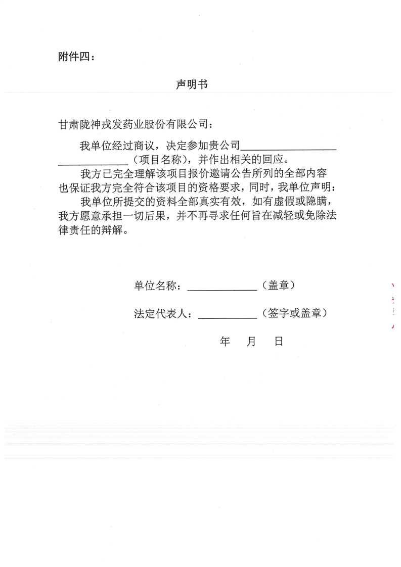 甘肅隴神戎發(fā)藥業(yè)股份有限公司乙醇蒸汽冷凝罐詢比采購公告