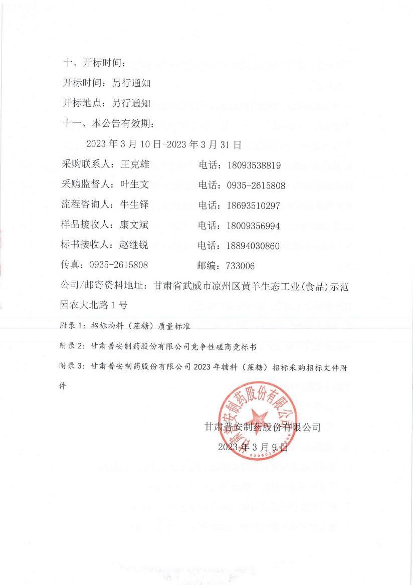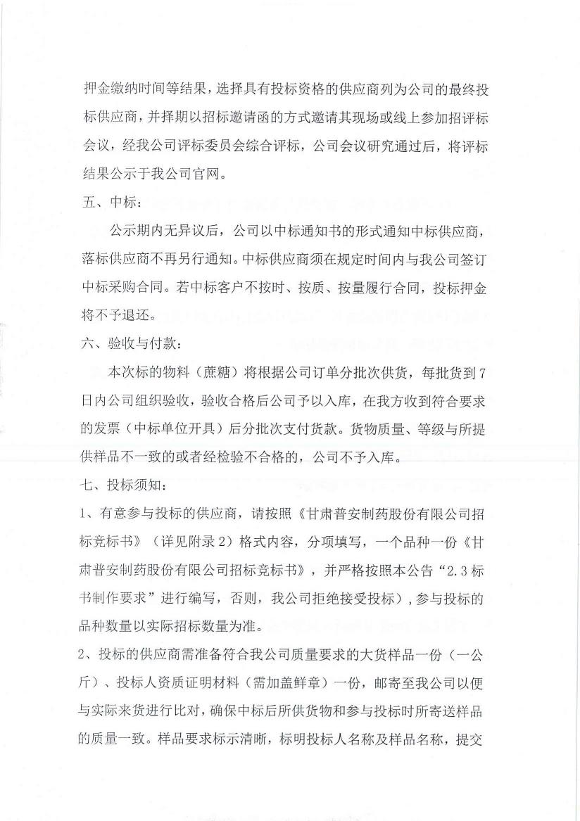甘肅普安制藥股份有限公司2023年宣肺止嗽合劑物料(蔗糖)采購(gòu)競(jìng)爭(zhēng)性磋商公告