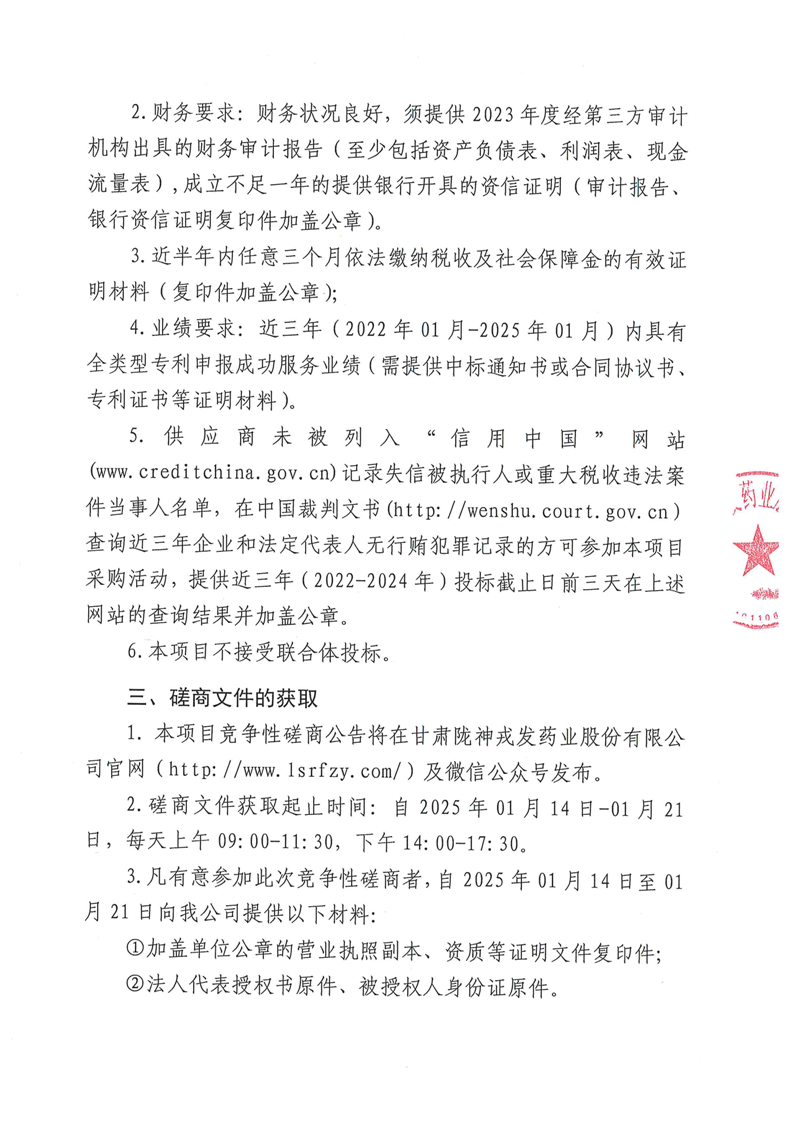 甘肅隴神戎發(fā)藥業(yè)股份有限公司專利申請(qǐng)服務(wù)機(jī)構(gòu)采購(gòu)項(xiàng)目競(jìng)爭(zhēng)性磋商公告