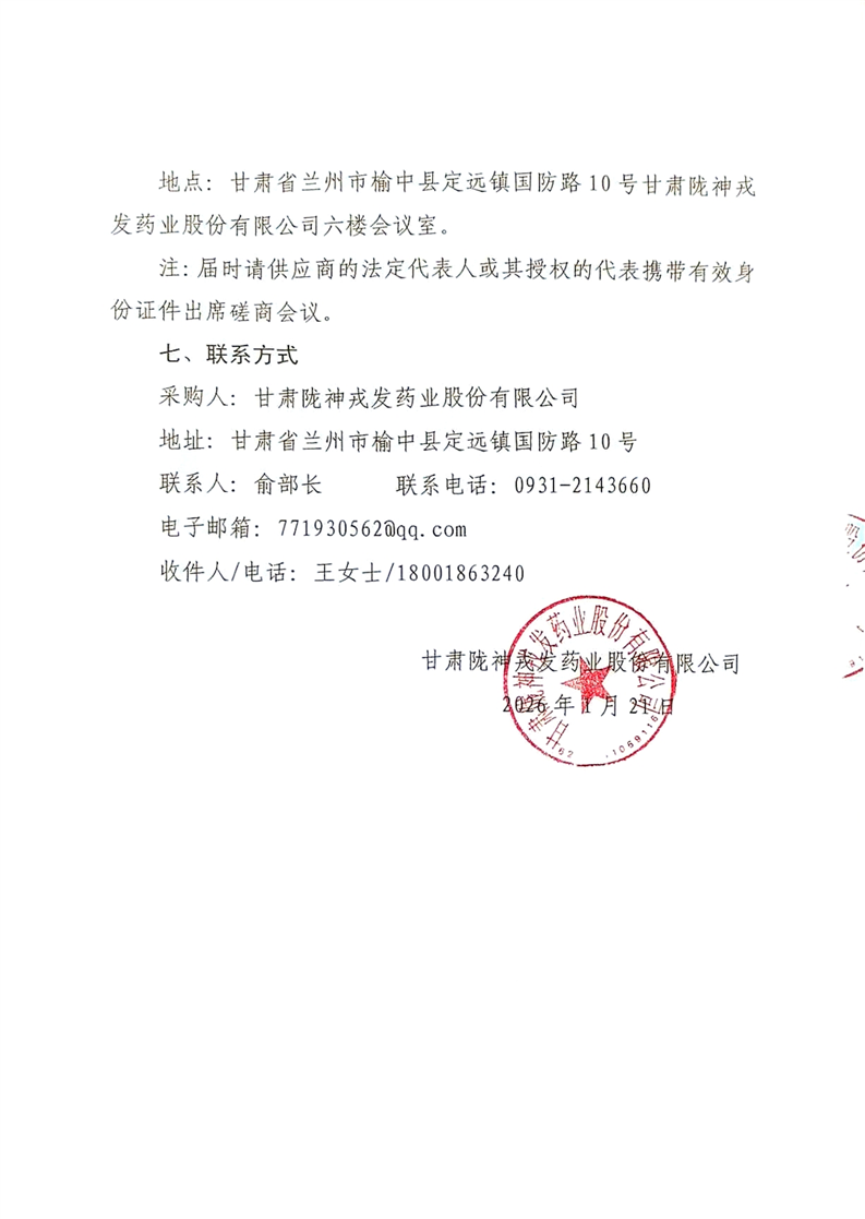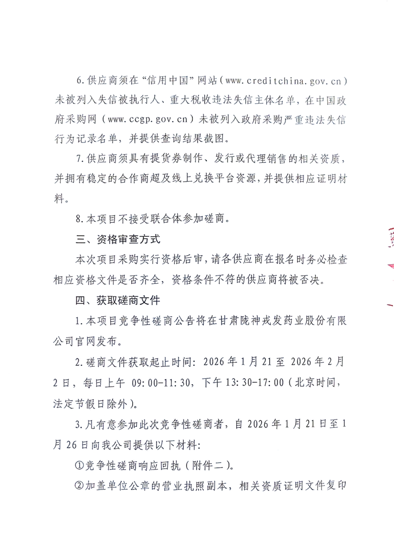 甘肅隴神戎發(fā)藥業(yè)股份有限公司職工年節(jié)福利及勞保用品提貨券采購(gòu)項(xiàng)目競(jìng)爭(zhēng)性磋商公告
