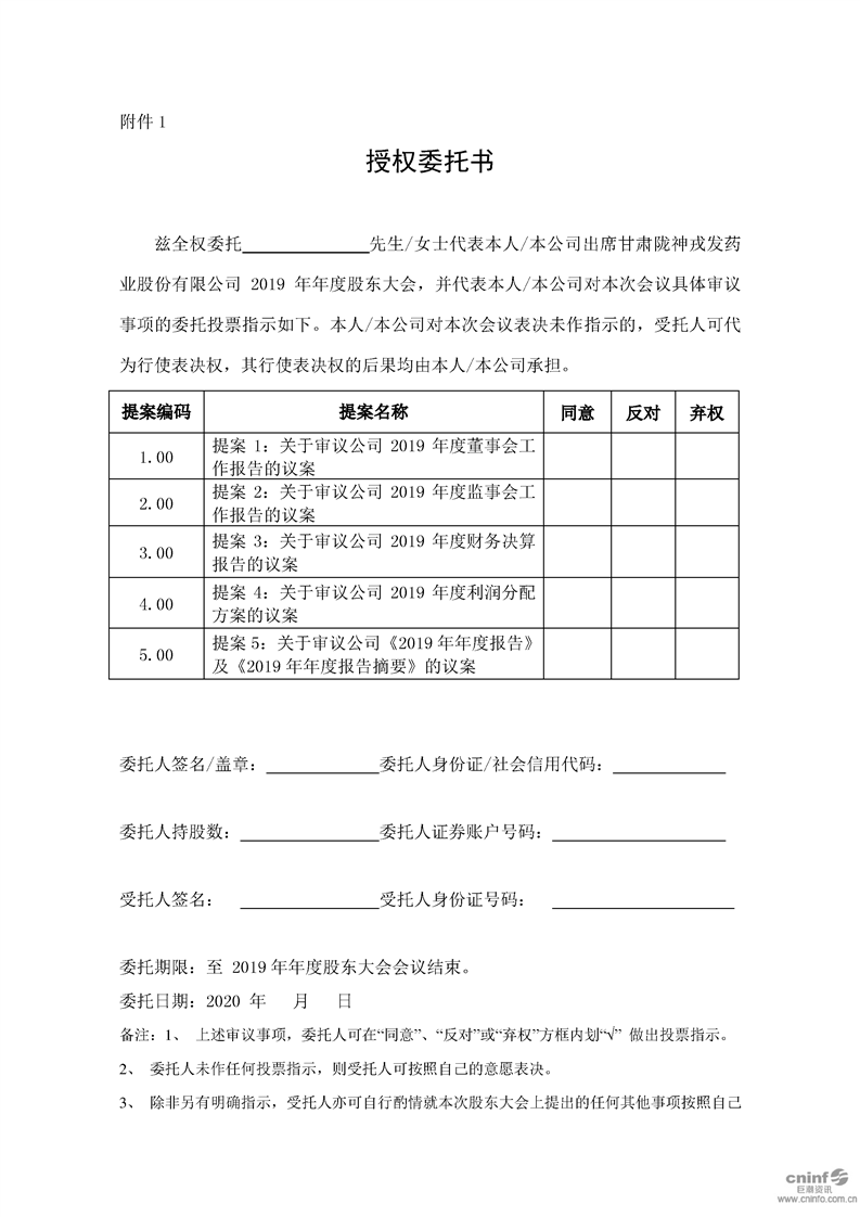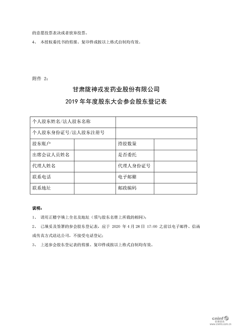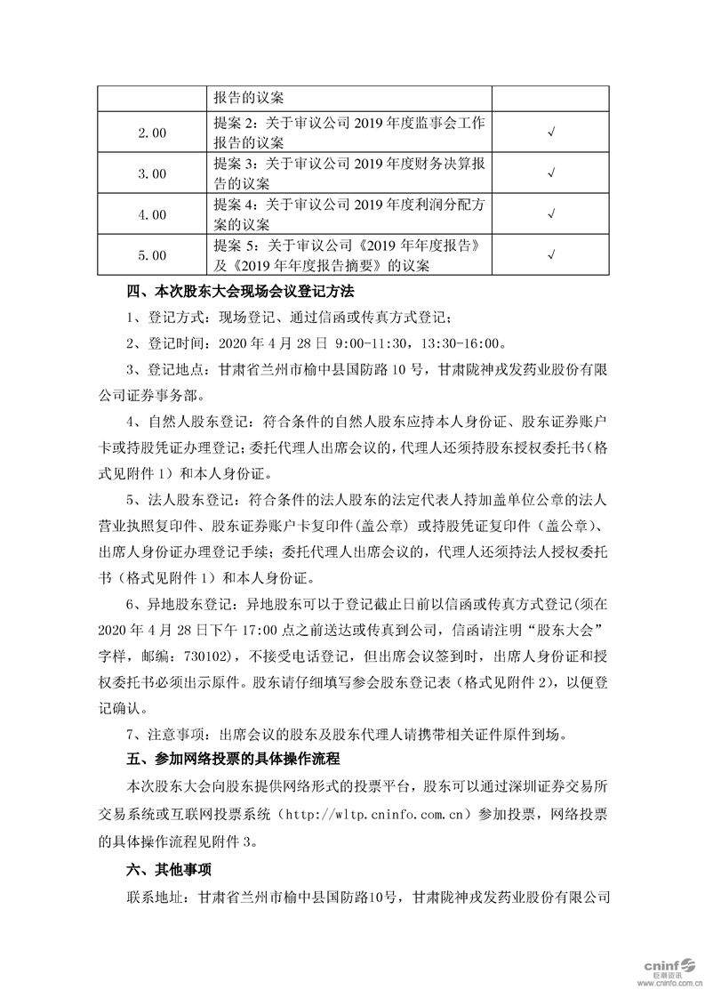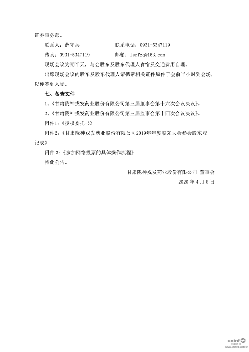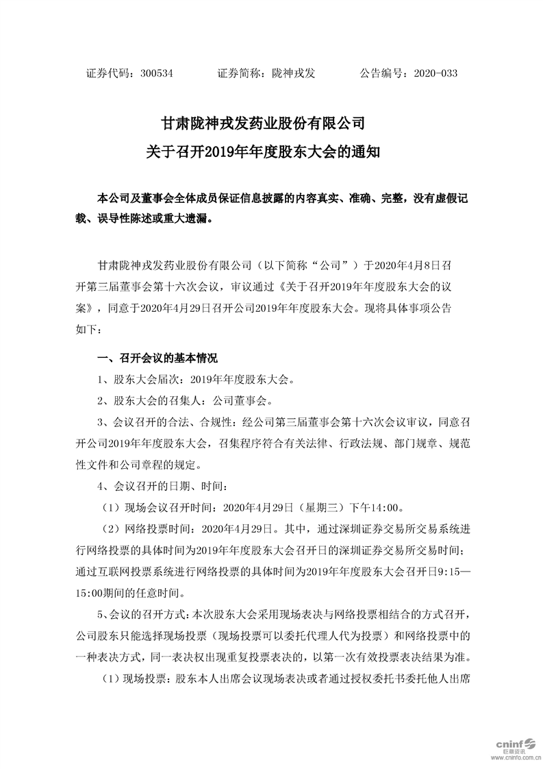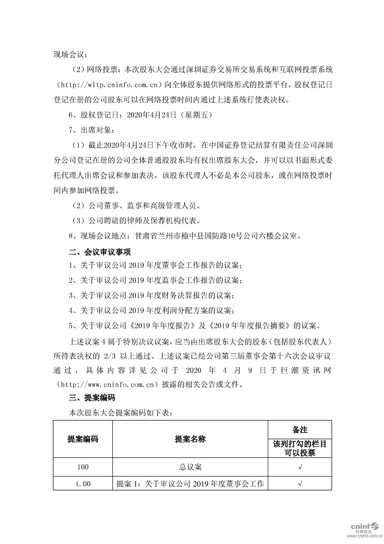 關(guān)于召開2019年年度股東大會(huì)的通知