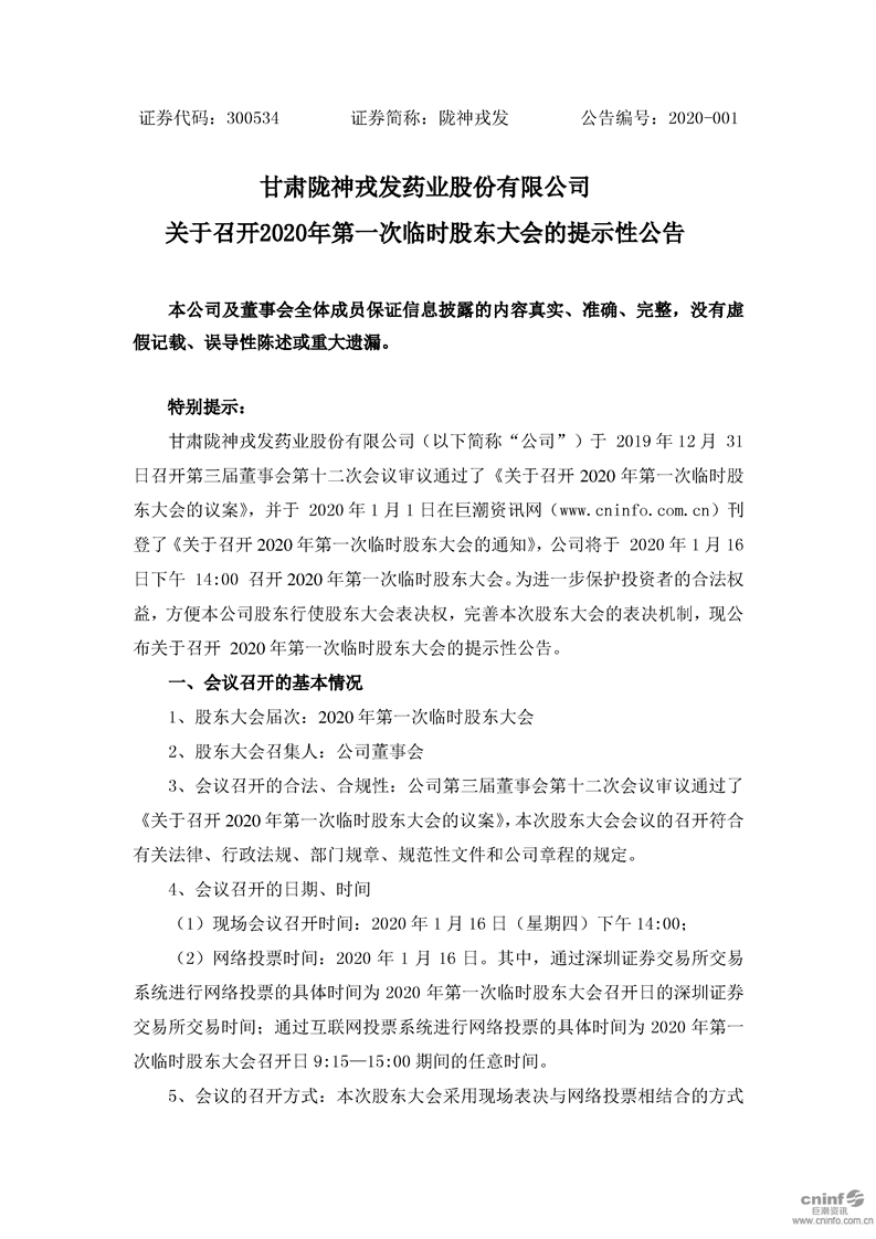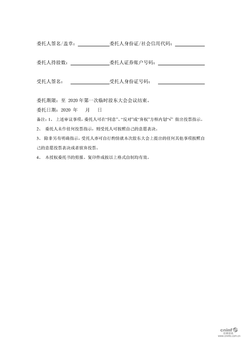 關(guān)于召開2020年第一次臨時股東大會的提示性公告