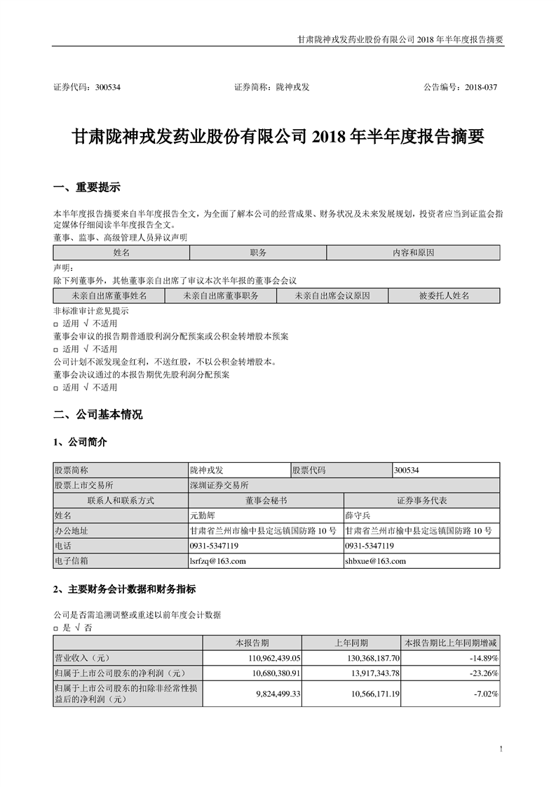2018 年半年度報告摘要