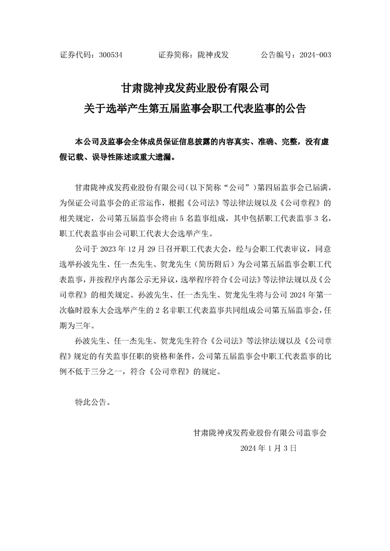 關(guān)于選舉產(chǎn)生第五屆監(jiān)事會(huì)職工代表監(jiān)事的公告