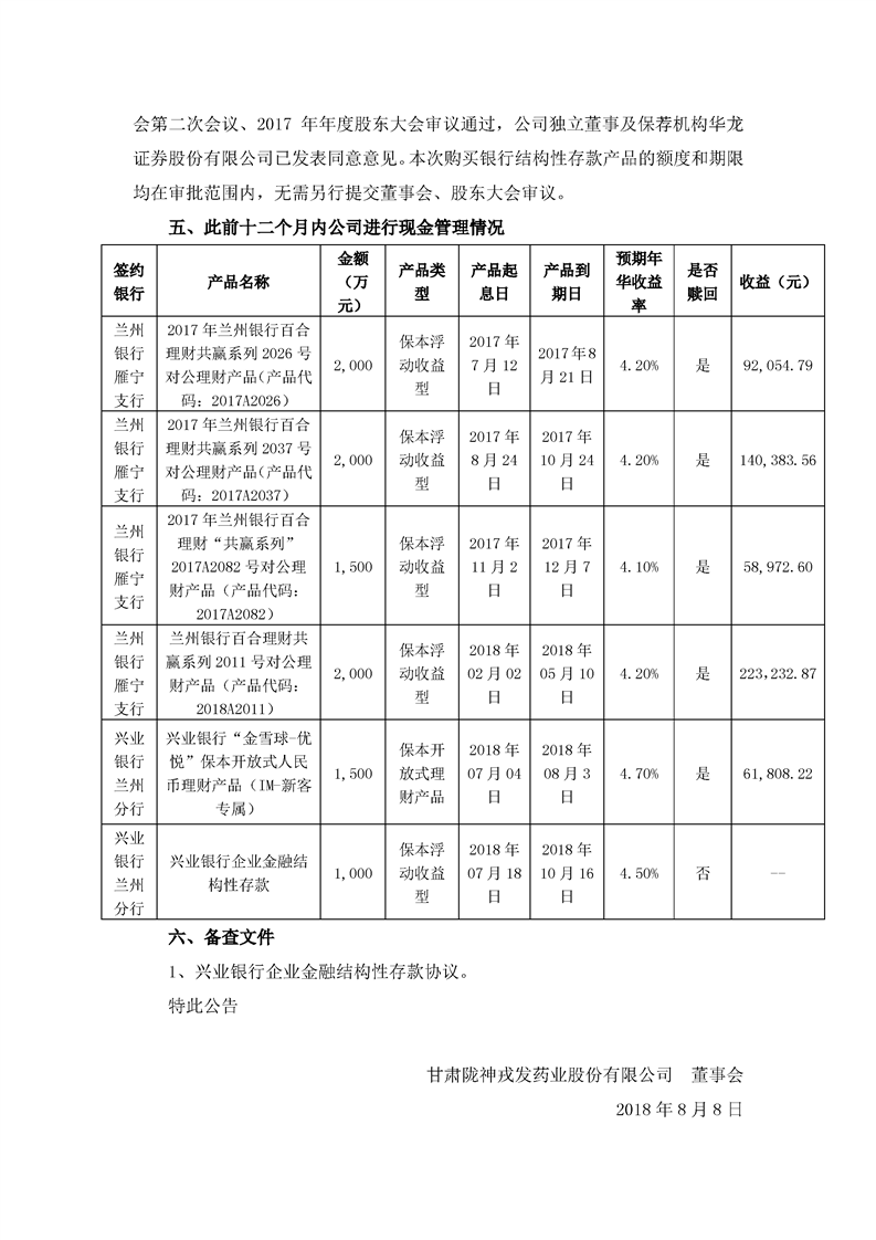 關(guān)于繼續(xù)使用閑置自有資金進行現(xiàn)金管理的進展公告