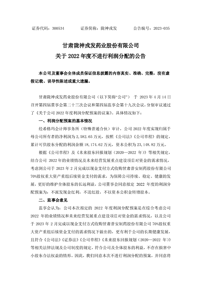 關于2022年度不進行利潤分配的公告