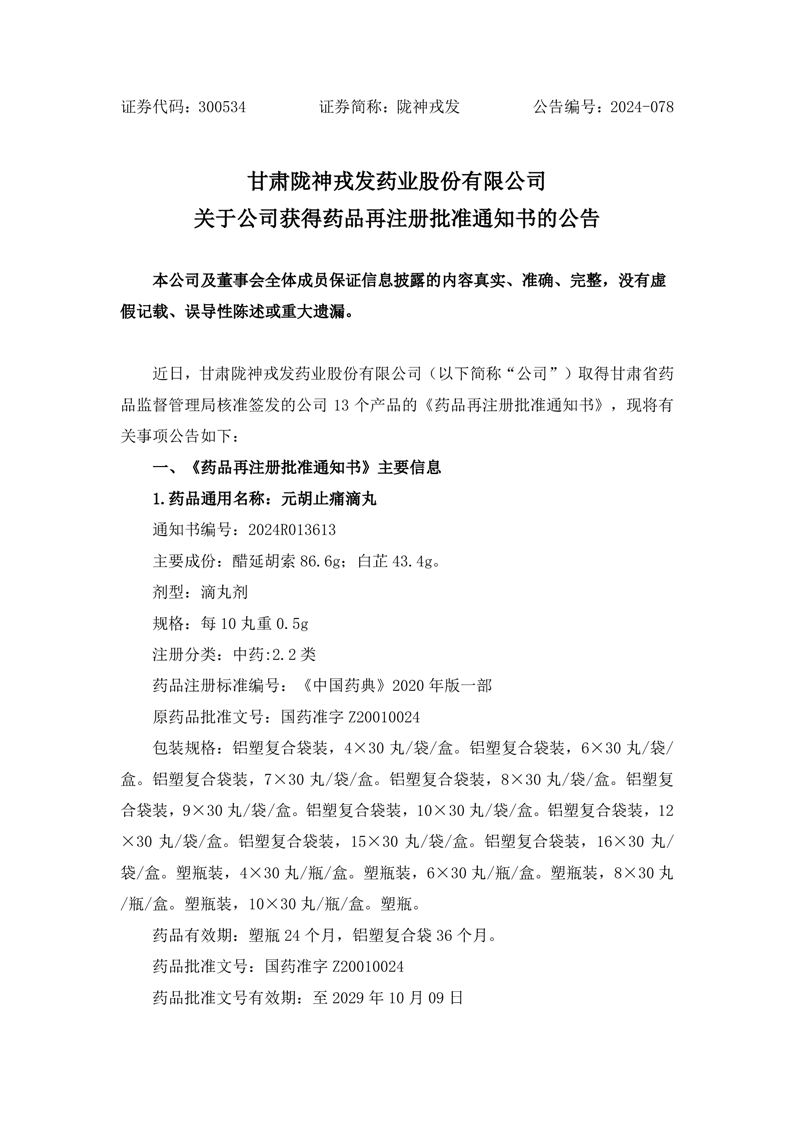 關(guān)于公司獲得藥品再注冊批準通知書的公告