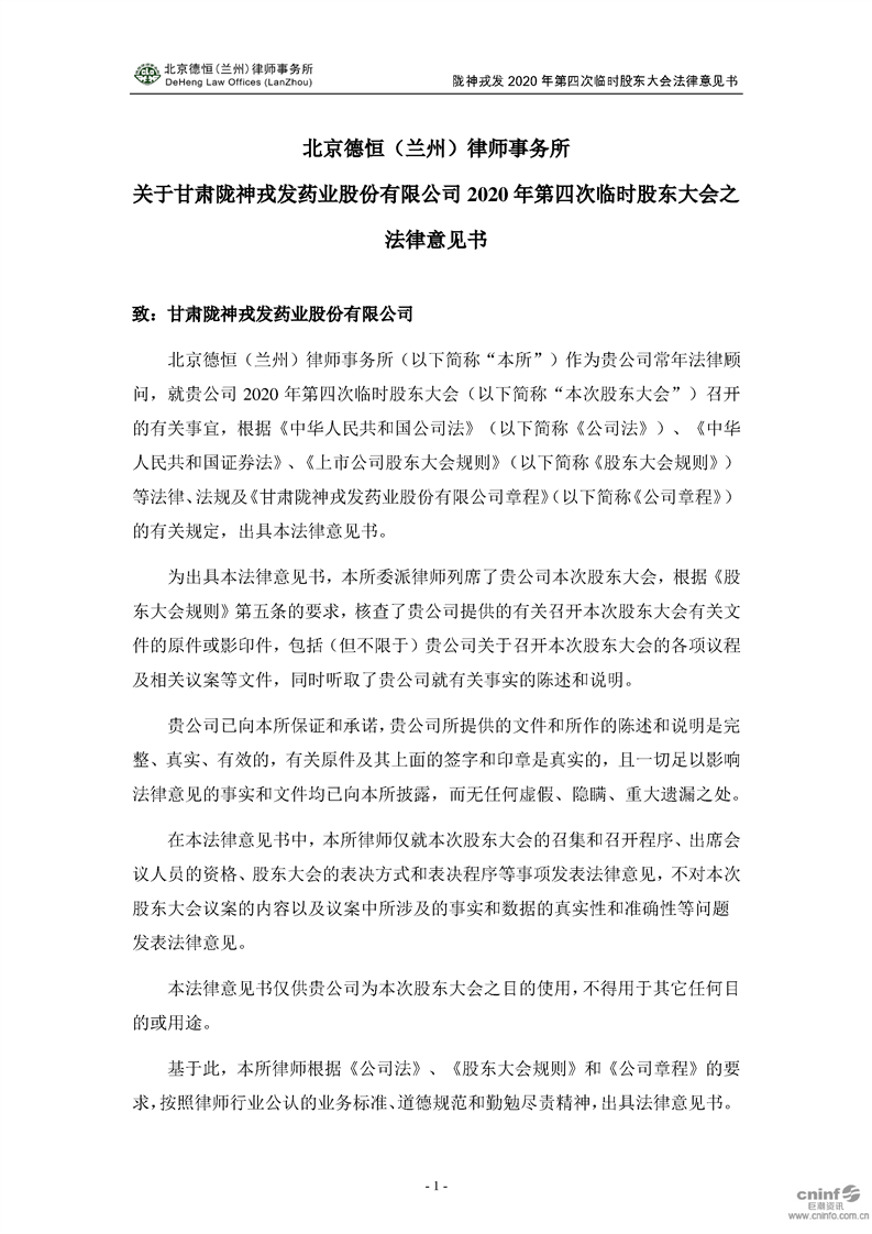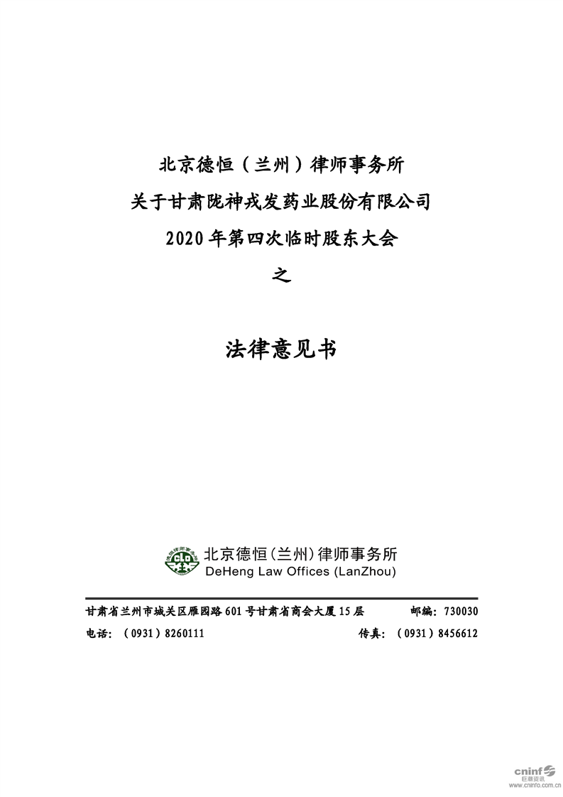2020年第四次臨時(shí)股東大會(huì)之法律意見(jiàn)書(shū)