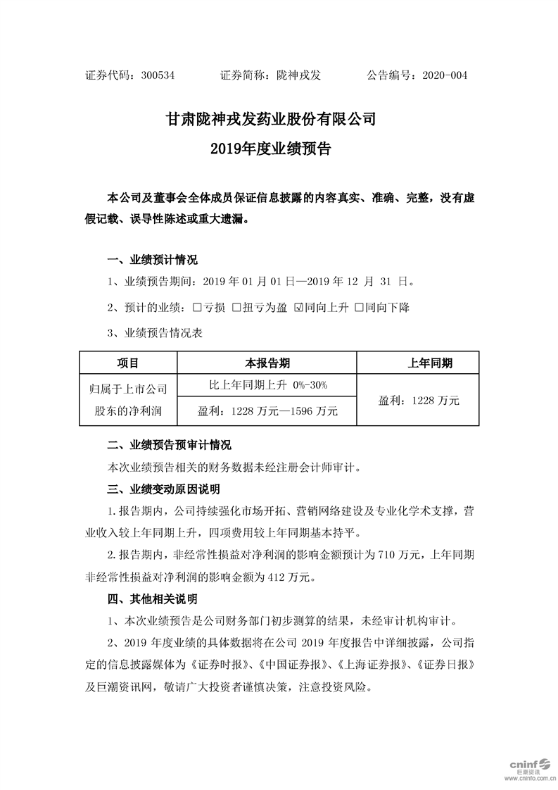 2019年度業(yè)績預(yù)告