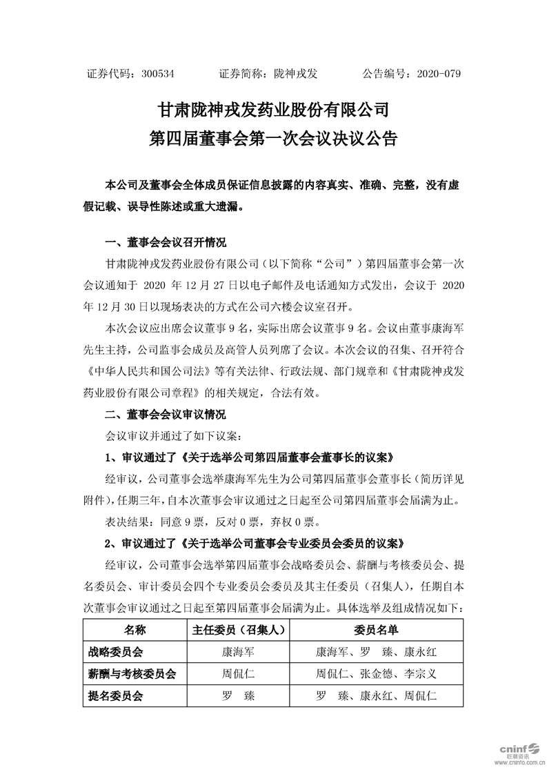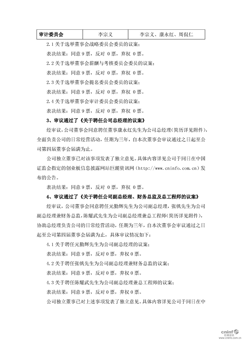 第四屆董事會第一次會議決議公告