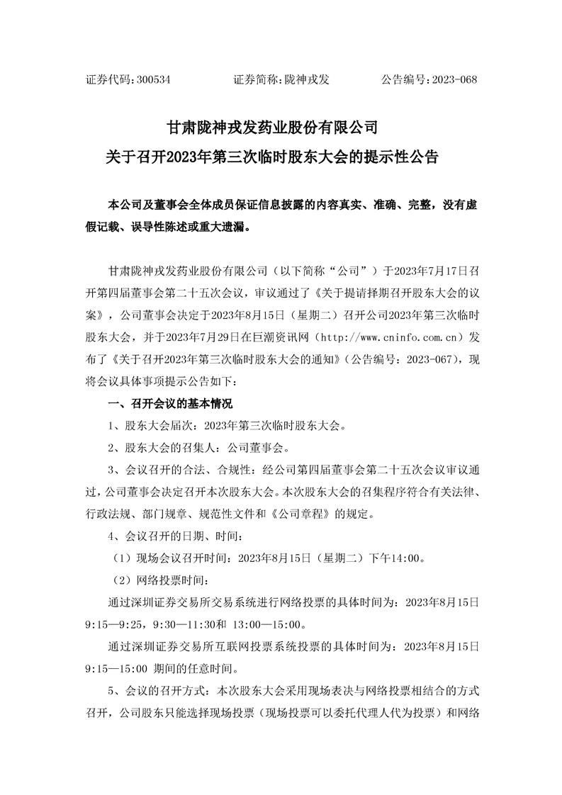 關(guān)于召開2023年第三次臨時(shí)股東大會(huì)的提示性公告