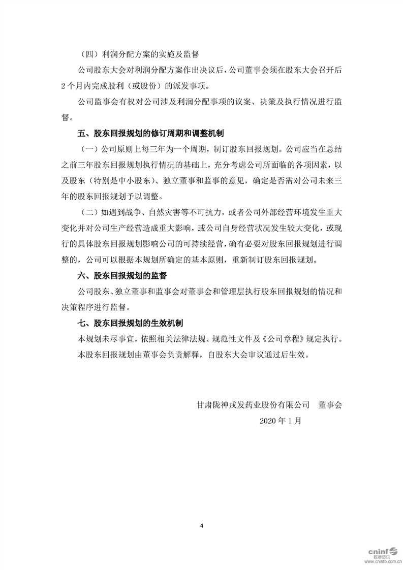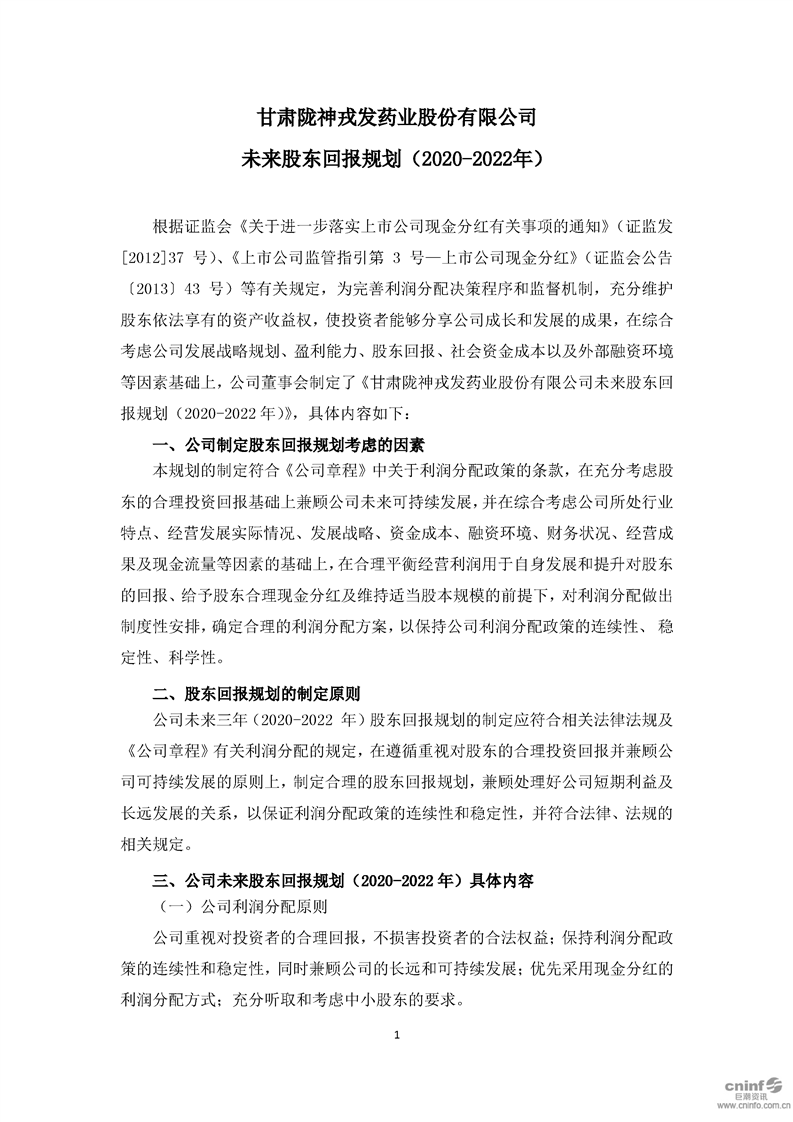 未來(lái)股東回報(bào)規(guī)劃(2020-2022年)