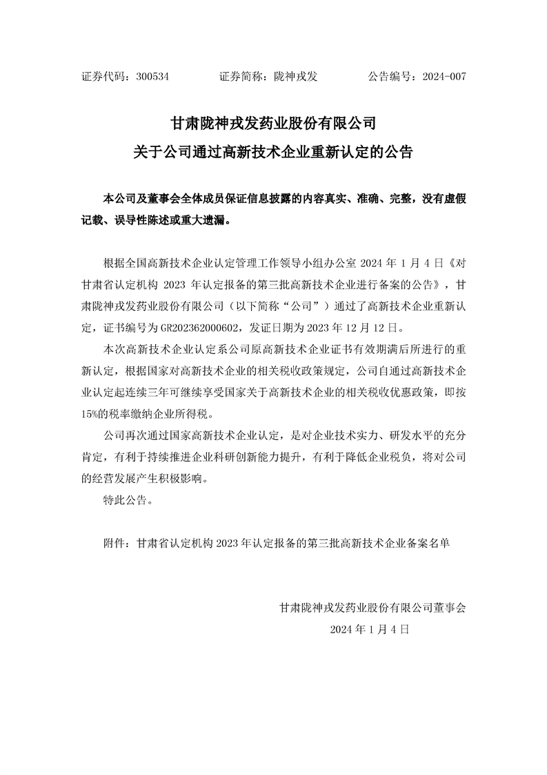 關(guān)于公司通過(guò)高新技術(shù)企業(yè)重新認(rèn)定的公告