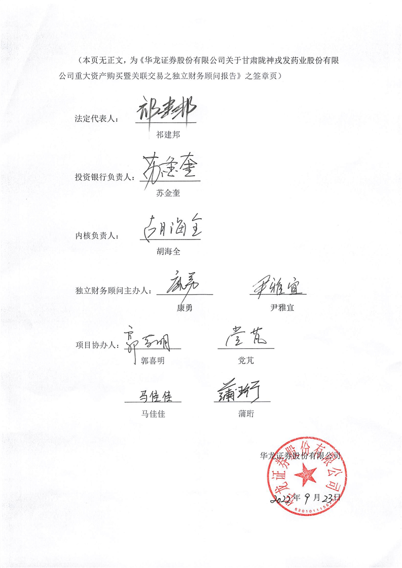 隴神戎發(fā):華龍證券股份有限公司關(guān)于甘肅隴神戎發(fā)藥業(yè)股份有限公司重大資產(chǎn)購買暨關(guān)聯(lián)交易之獨(dú)立財(cái)務(wù)顧問報(bào)告