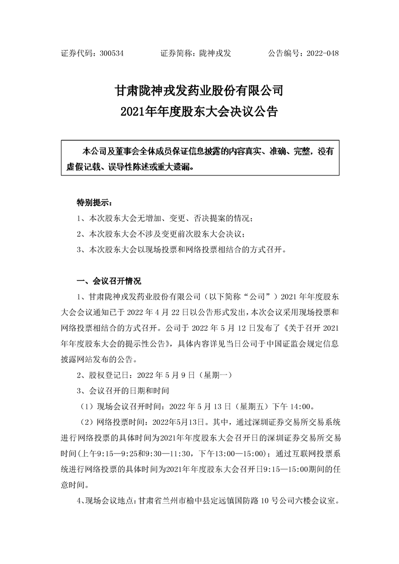 2021年年度股東大會(huì)決議公告