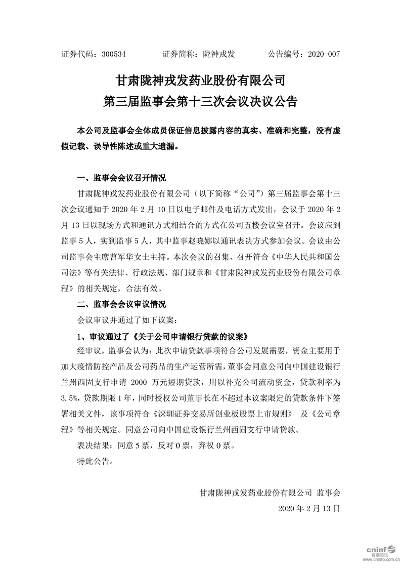 第三屆監(jiān)事會(huì)第十三次會(huì)議決議公告