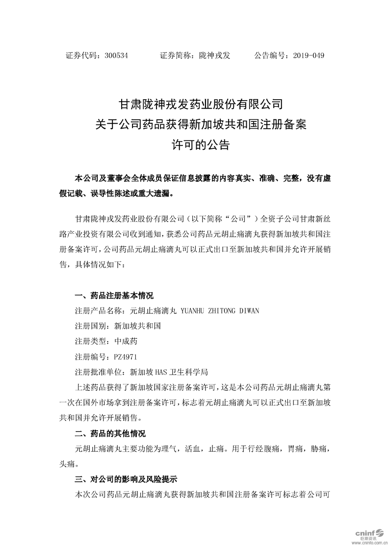 關(guān)于公司藥品獲得新加坡共和國注冊備案許可的公告