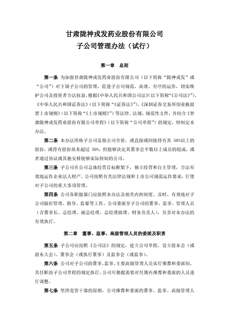 子公司管理辦法(試行)(2023年4月)