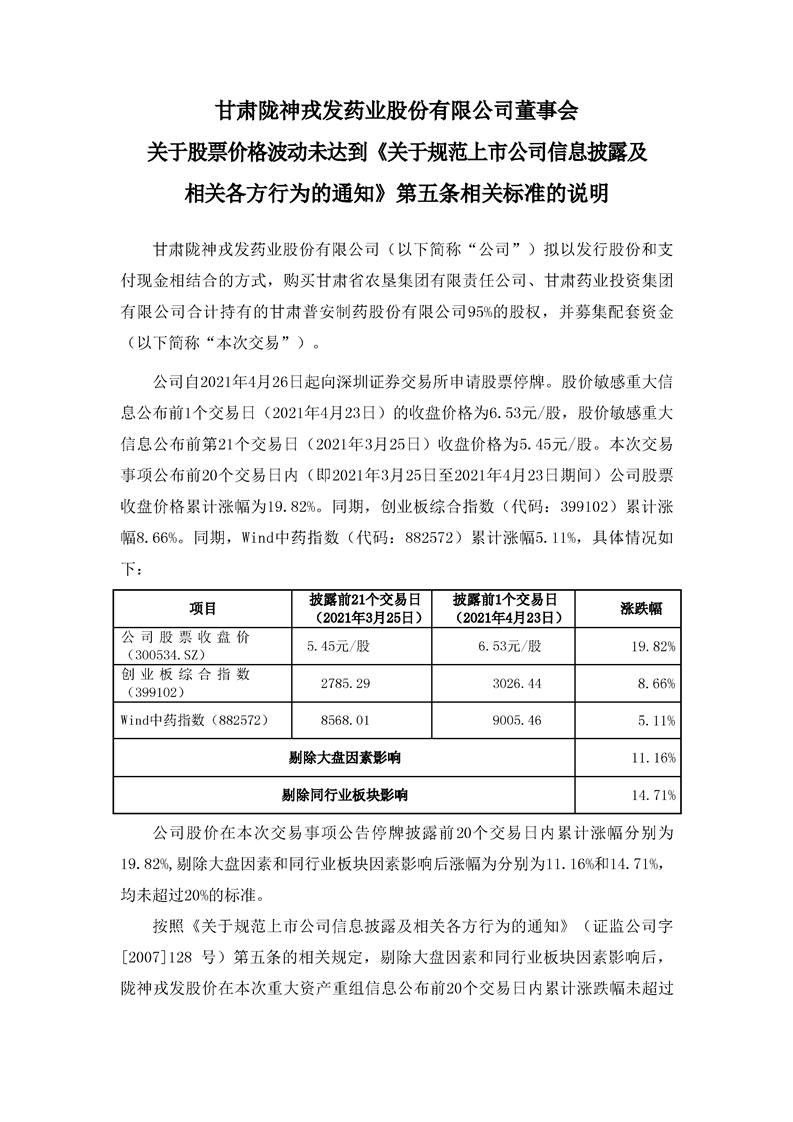 董事會(huì)關(guān)于股票價(jià)格波動(dòng)未達(dá)到《關(guān)于規(guī)范上市公司信息披露及相關(guān)各方行為的通知》第五條相關(guān)標(biāo)準(zhǔn)的說明