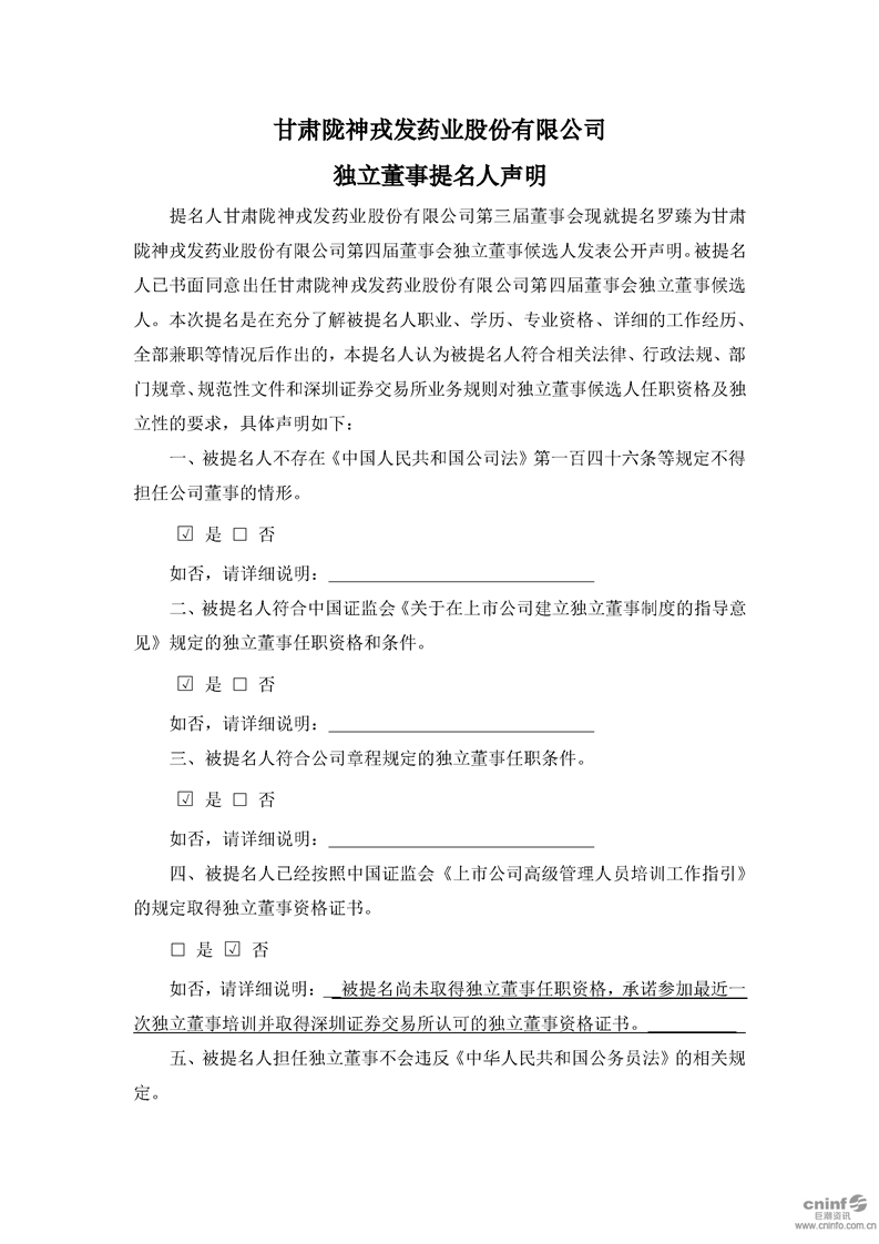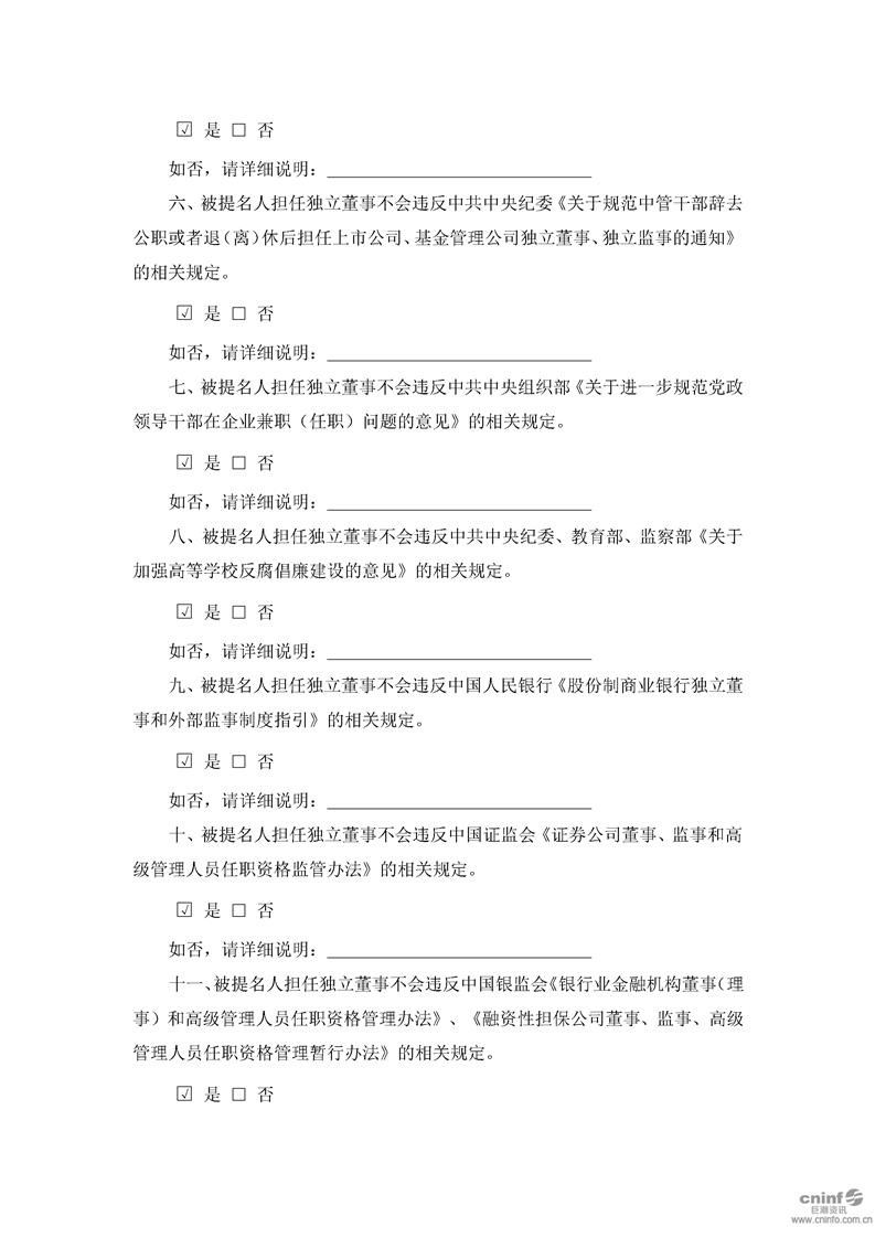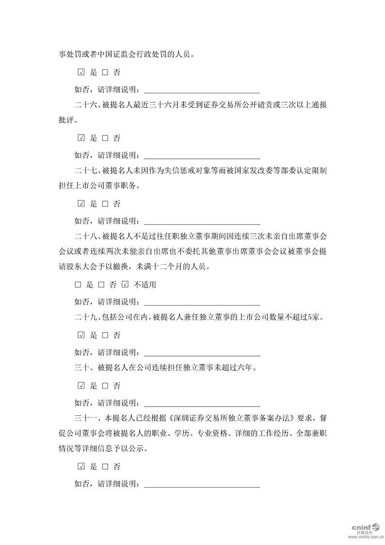 獨(dú)立董事提名人聲明