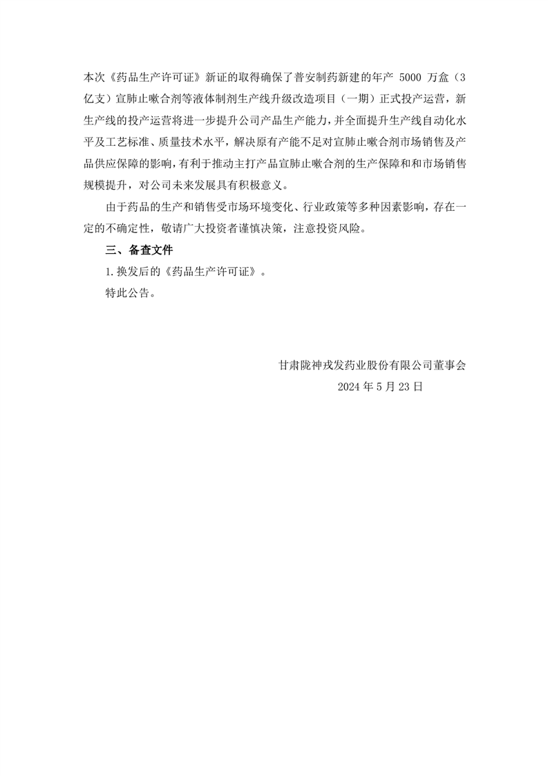 關于控股子公司取得換發(fā)后的《藥品生產許可證》的公告