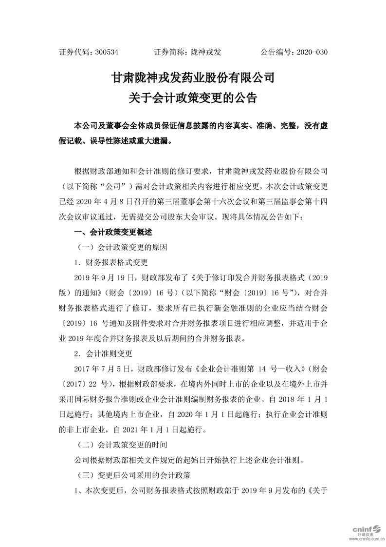 關(guān)于會(huì)計(jì)政策變更的公告