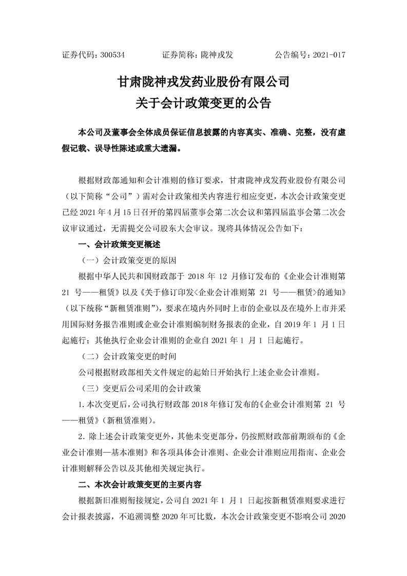 關(guān)于會(huì)計(jì)政策變更的公告