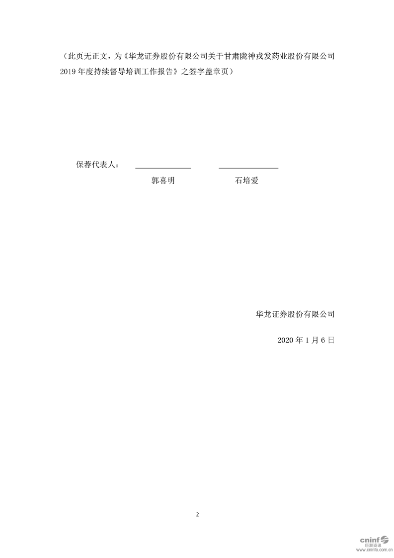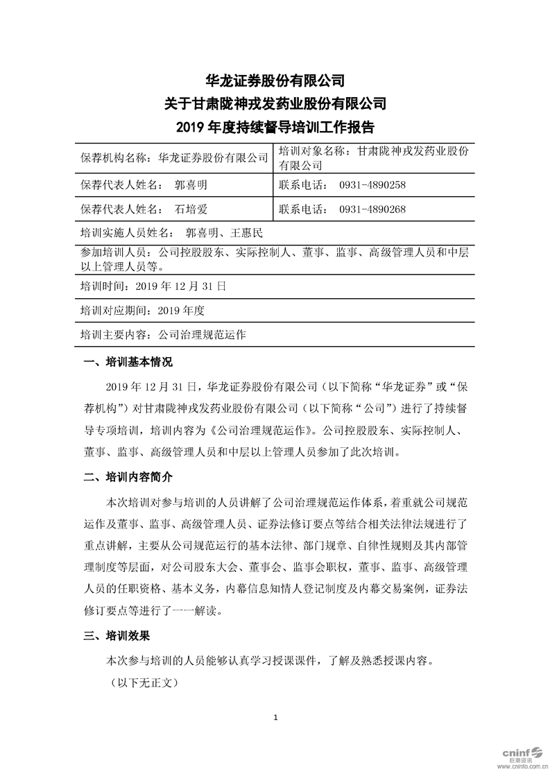 華龍證券股份有限公司關(guān)于公司2019年度持續(xù)督導(dǎo)培訓(xùn)工作報(bào)告