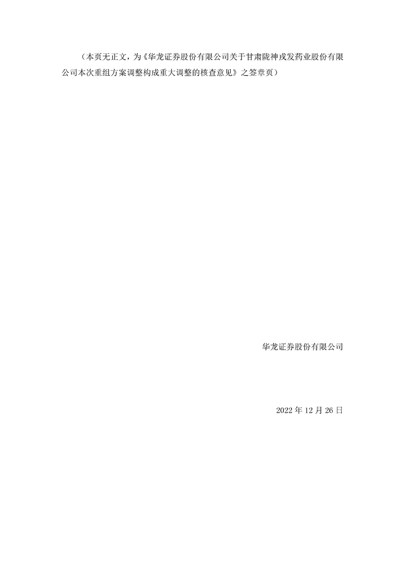 華龍證券股份有限公司關于甘肅隴神戎發(fā)藥業(yè)股份有限公司本次重組方案調(diào)整構(gòu)成重大調(diào)整的核查意見
