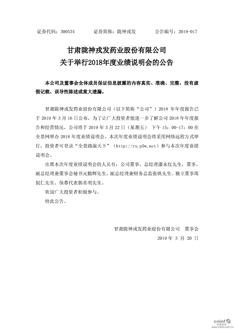 關(guān)于舉行2018年度業(yè)績(jī)說(shuō)明會(huì)的公告