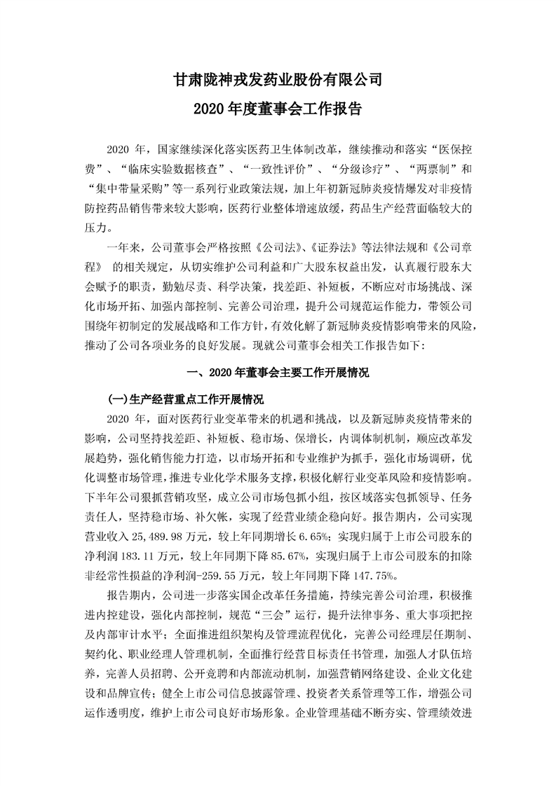 2020年度董事會工作報告