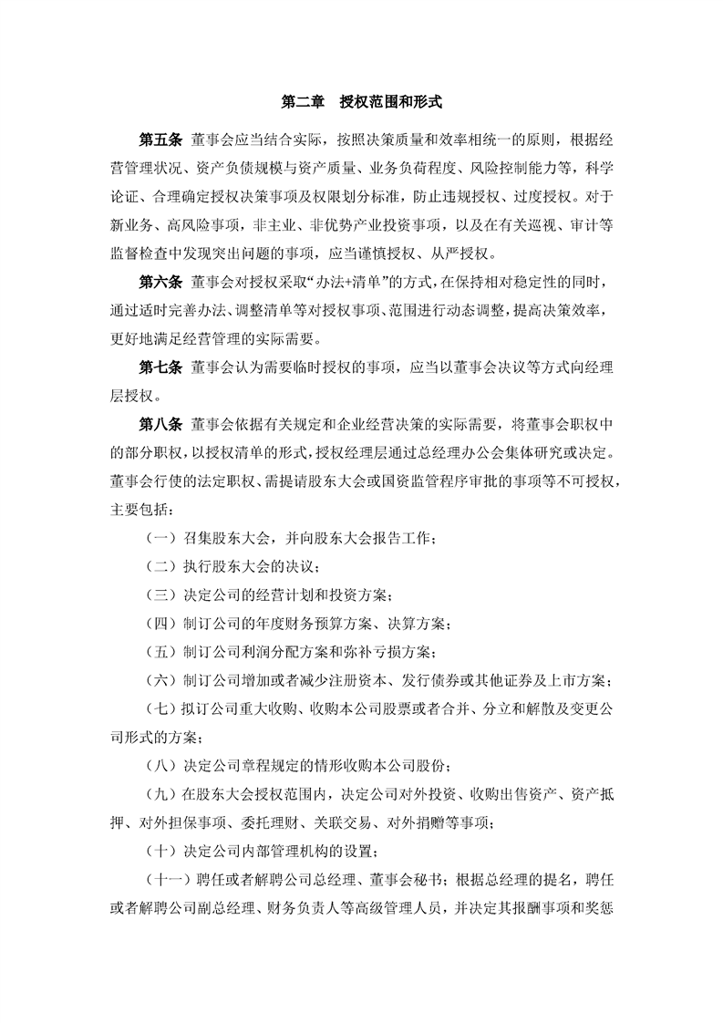 董事會(huì)向經(jīng)理層授權(quán)管理辦法(2022年5月)