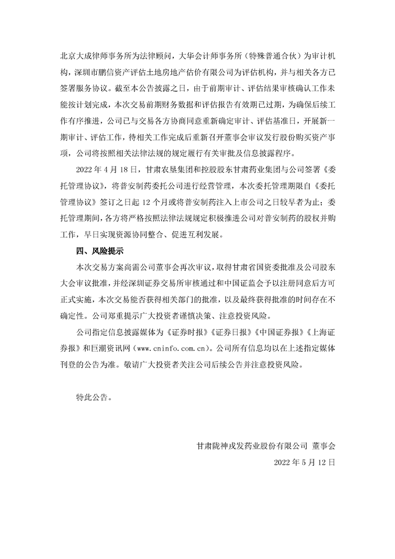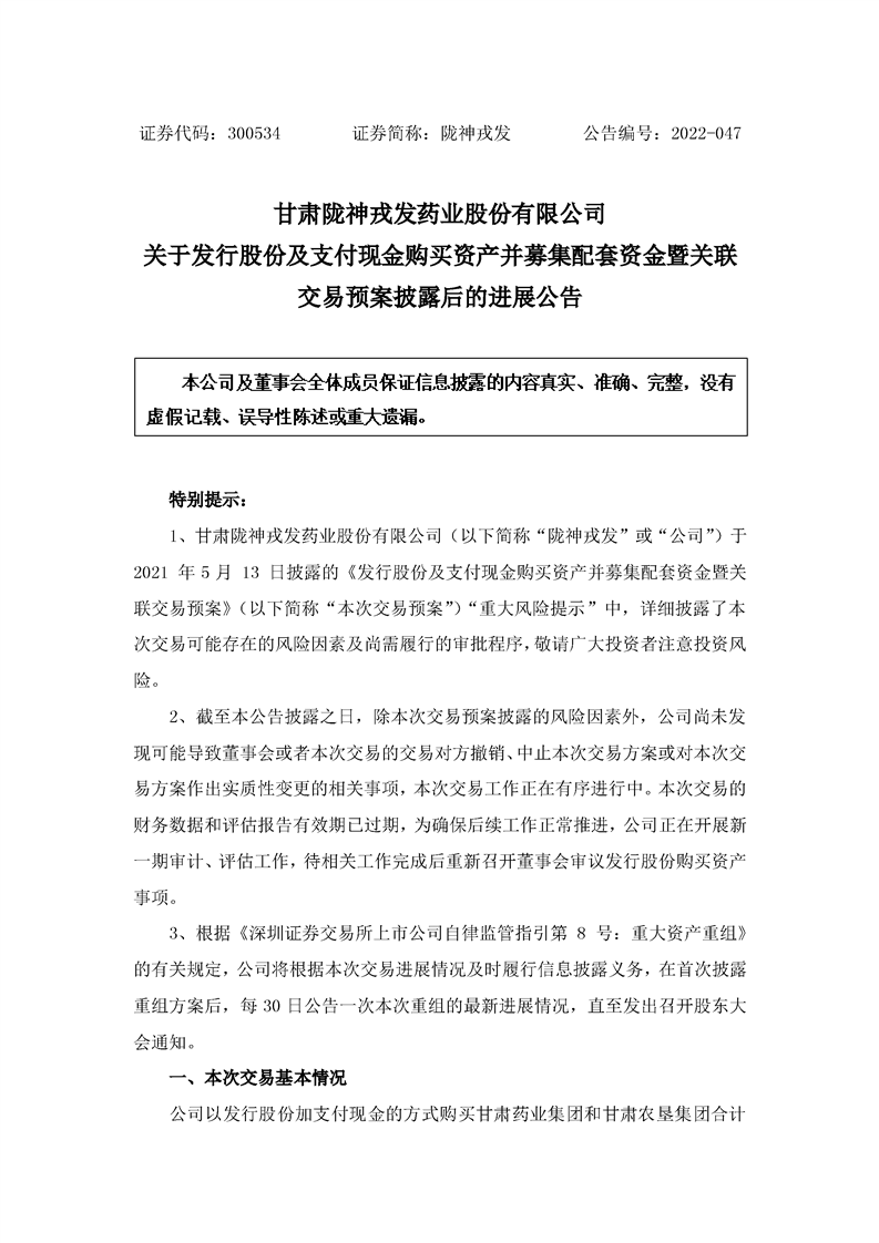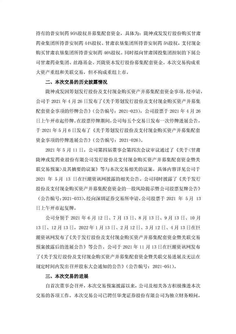 隴神戎發(fā):關(guān)于發(fā)行股份及支付現(xiàn)金購(gòu)買資產(chǎn)并募集配套資金暨關(guān)聯(lián)交易預(yù)案披露后的進(jìn)展公告