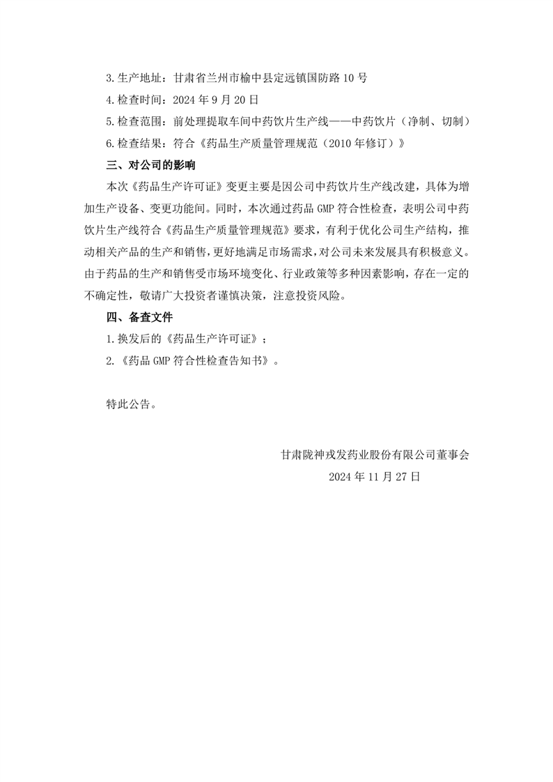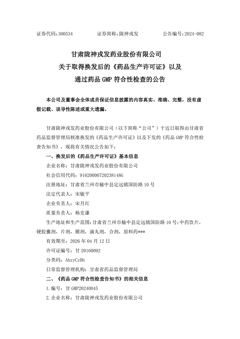 關(guān)于取得換發(fā)后的《藥品生產(chǎn)許可證》以及通過藥品GMP符合性檢查的公告