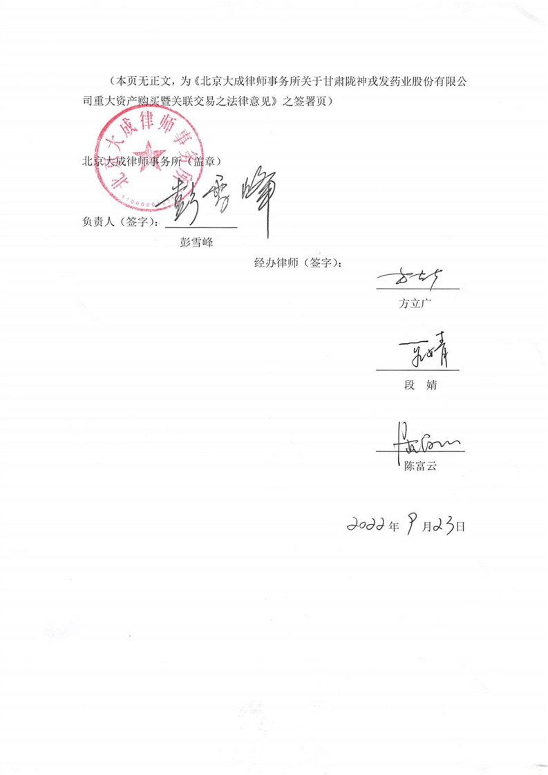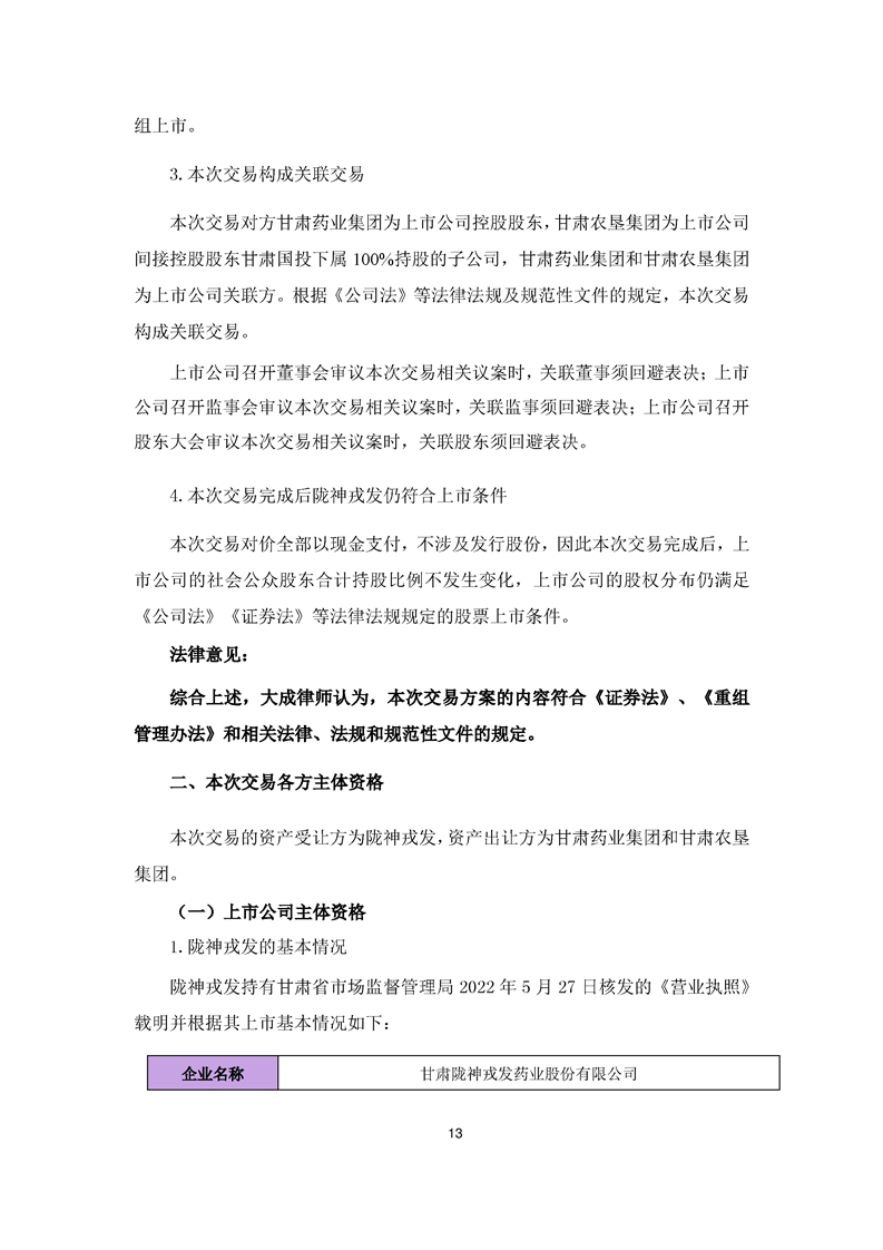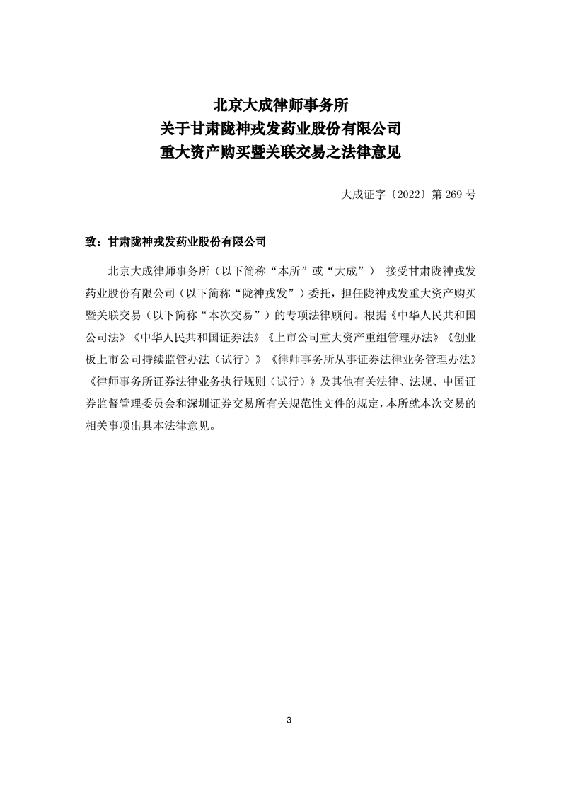 北京大成律師事務(wù)所關(guān)于隴神戎發(fā)重大資產(chǎn)購買暨關(guān)聯(lián)交易法律意見