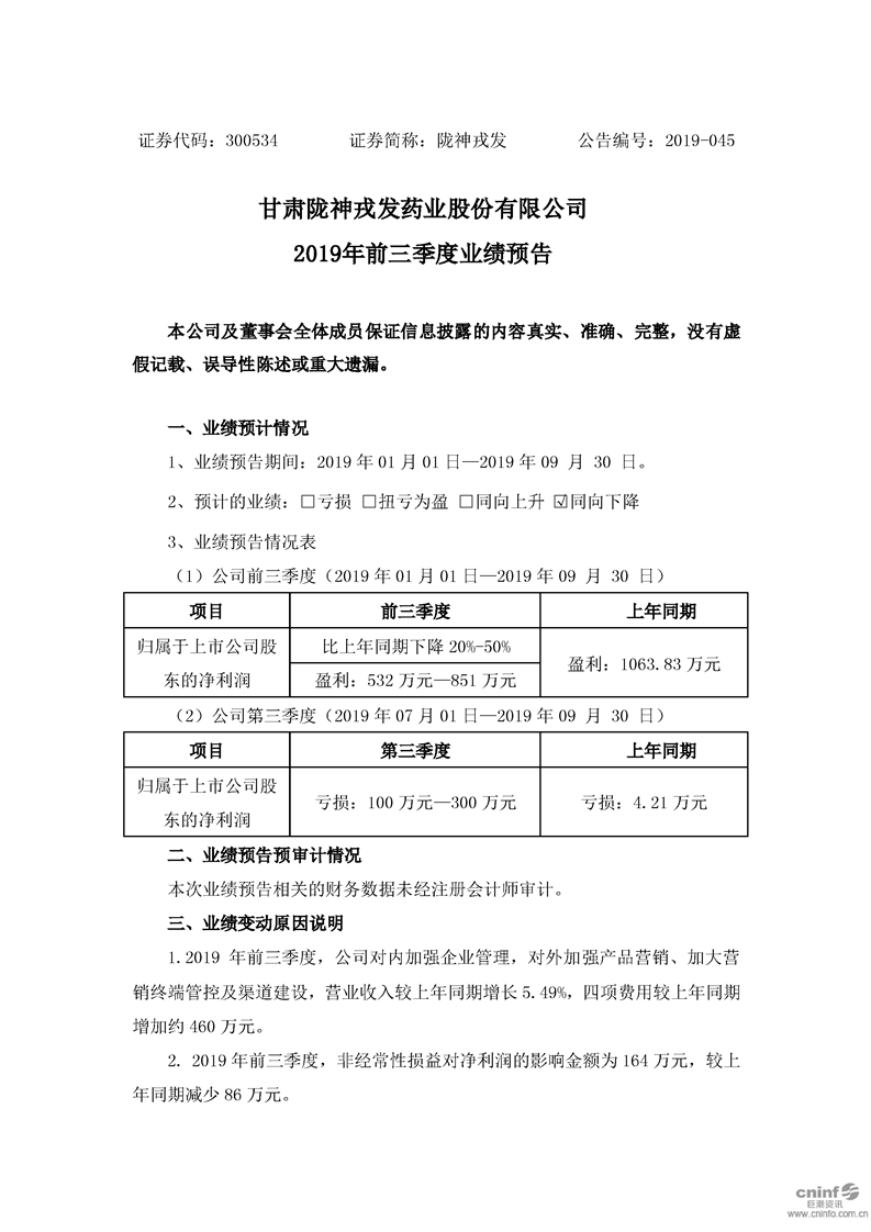 2019年前三季度業(yè)績(jī)預(yù)告