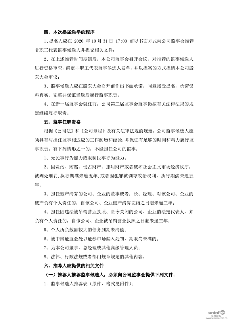 關(guān)于監(jiān)事會換屆選舉的提示性公告