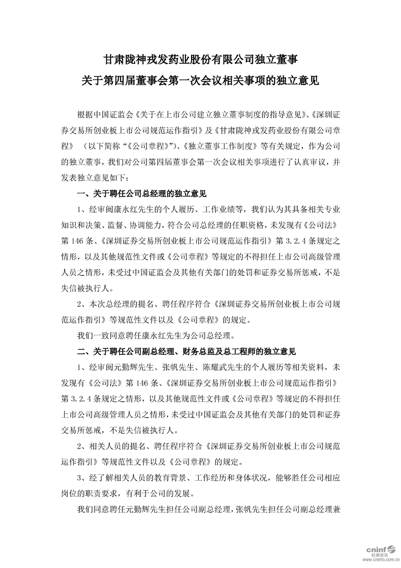 獨立董事關(guān)于第四屆董事會第一次會議相關(guān)事項的獨立意見