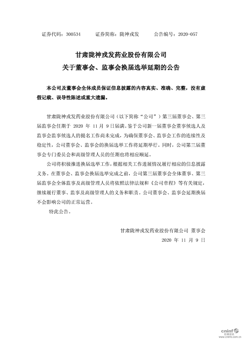 關(guān)于董事會、監(jiān)事會換屆選舉延期的公告