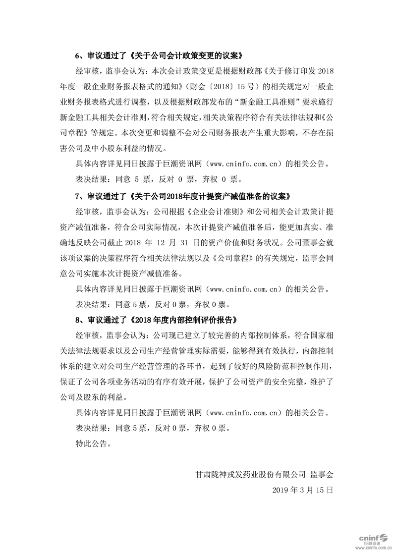 第三屆監(jiān)事會(huì)第六次會(huì)議決議公告