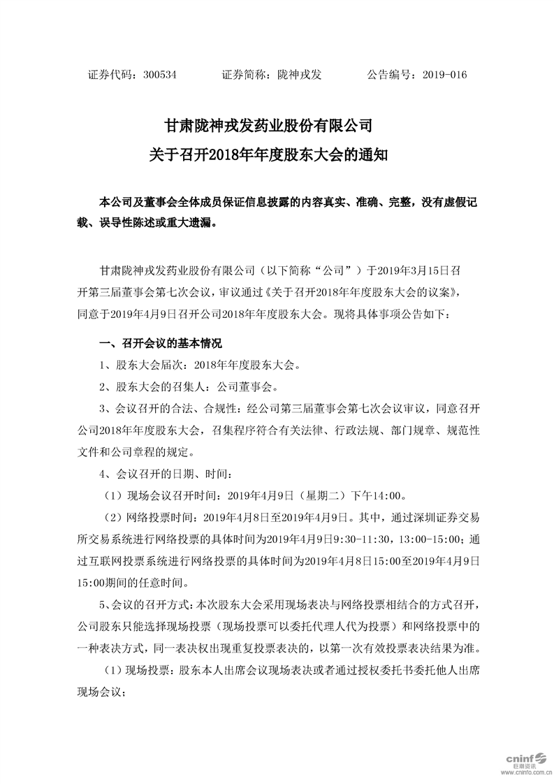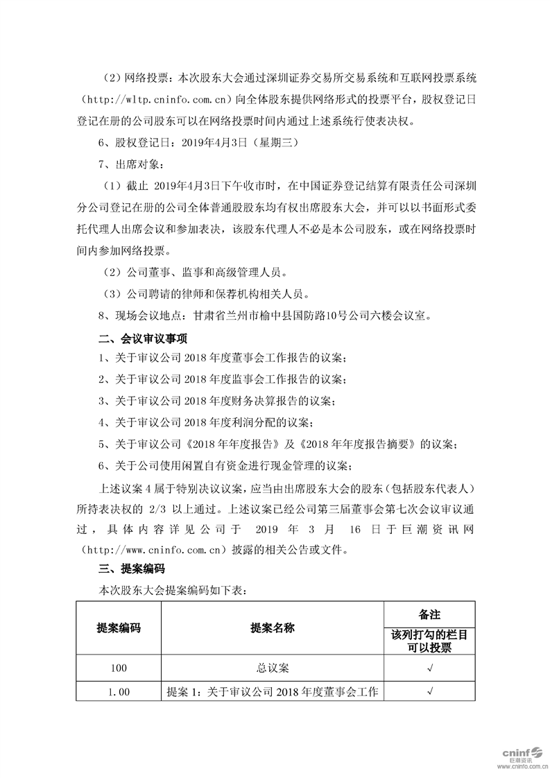 關(guān)于召開2018年年度股東大會的通知