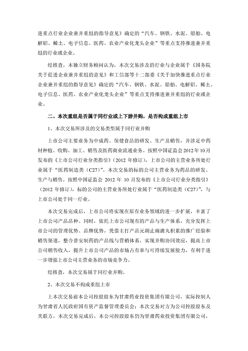 華龍證券股份有限公司關(guān)于甘肅隴神戎發(fā)藥業(yè)股份有限公司本次交易產(chǎn)業(yè)政策和交易類型之獨(dú)立財務(wù)顧問核查意見