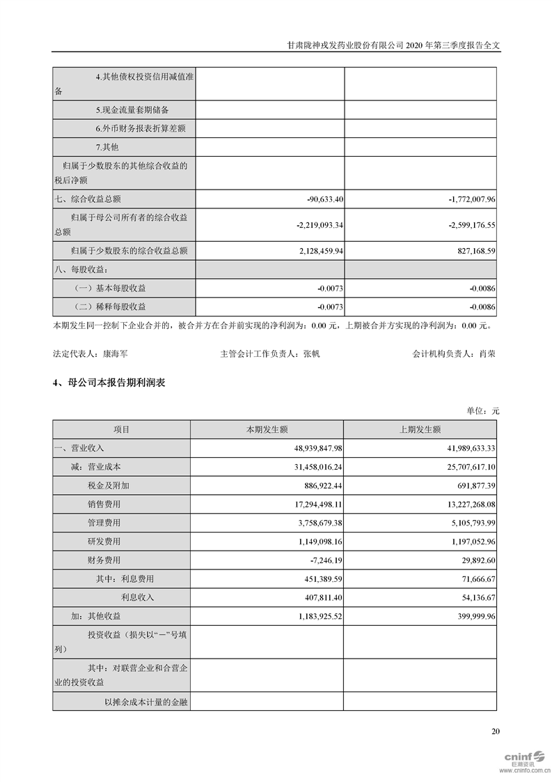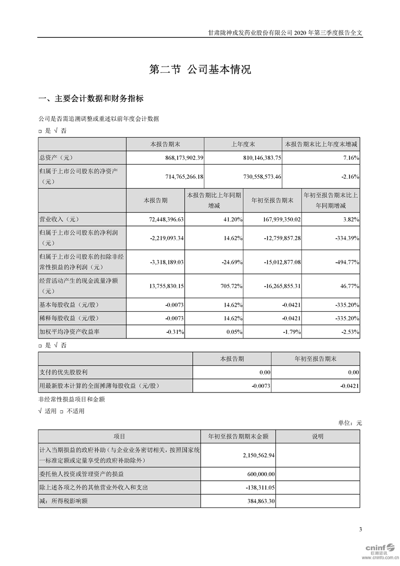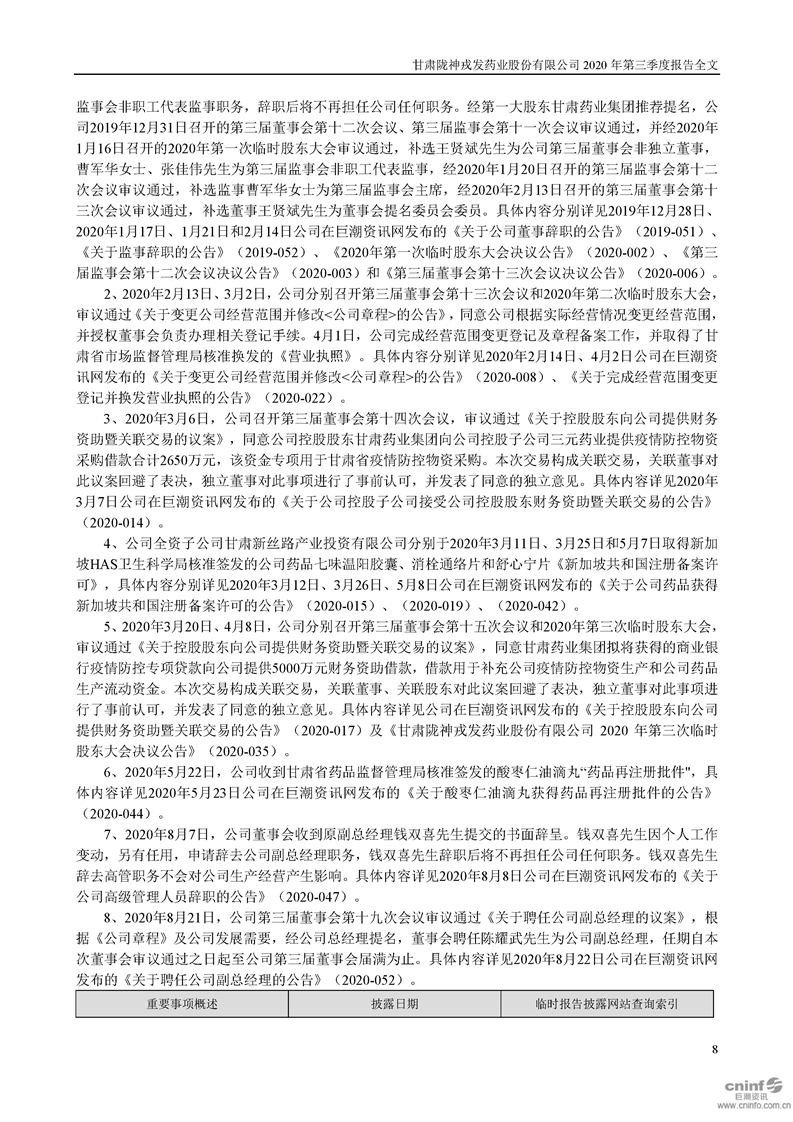 2020年第三季度報告全文