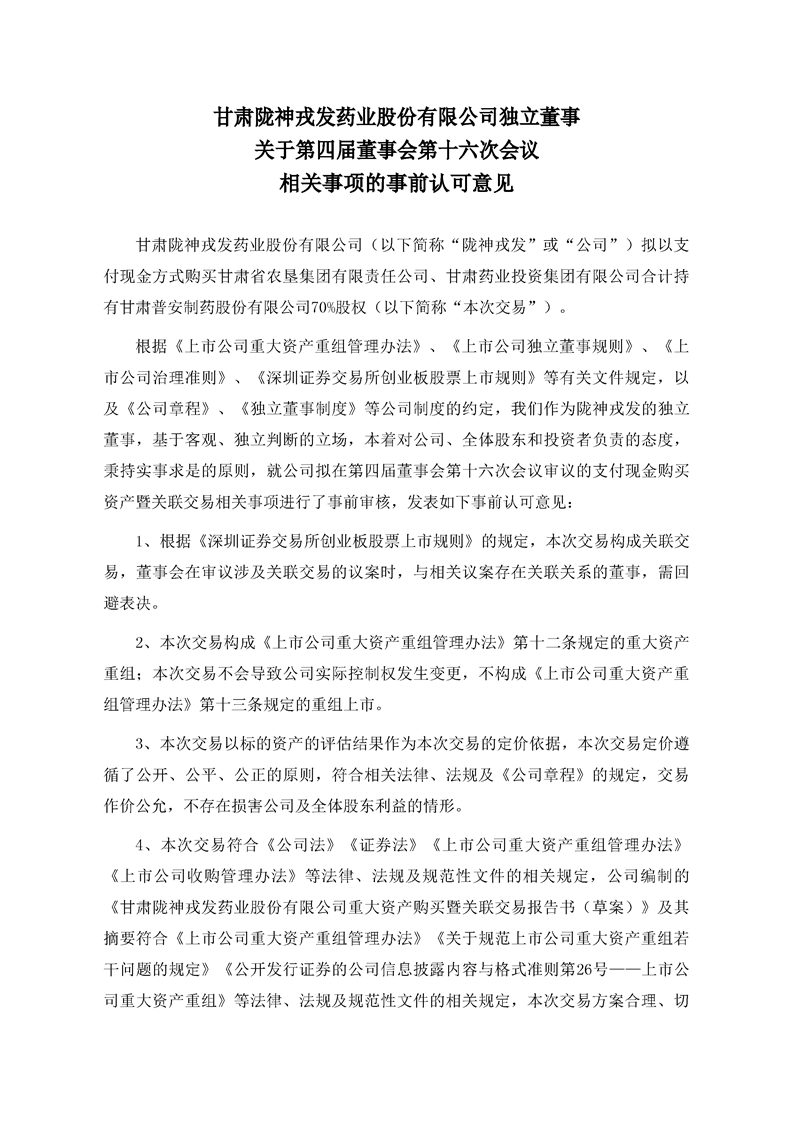 獨(dú)立董事關(guān)于第四屆董事會第十六次會議相關(guān)事項(xiàng)的事前認(rèn)可的意見
