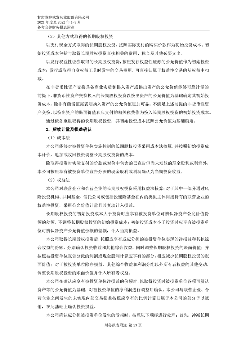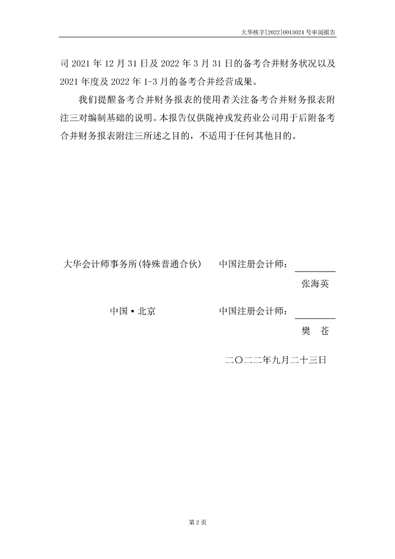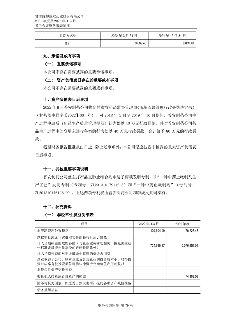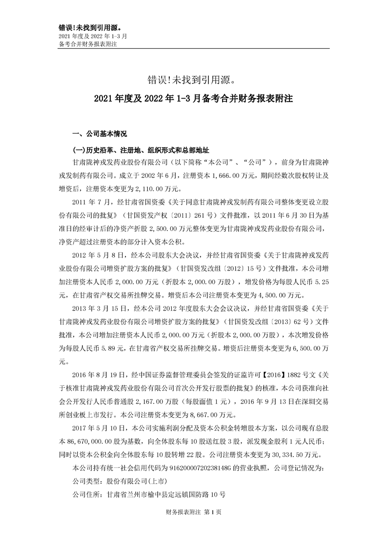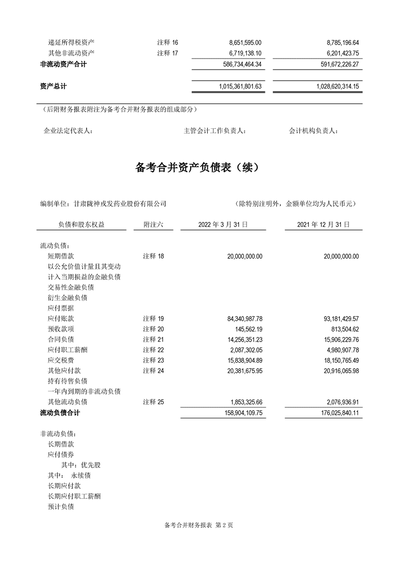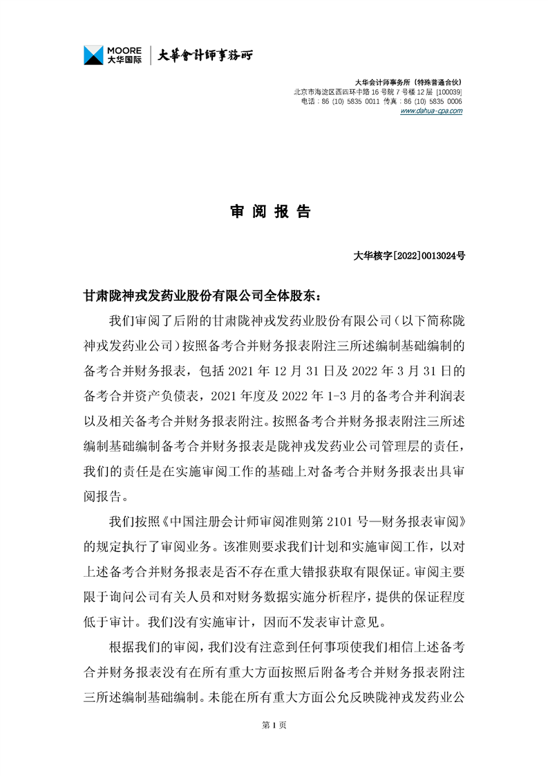 甘肅隴神戎發(fā)藥業(yè)股份有限公司備考財務報表審閱報告