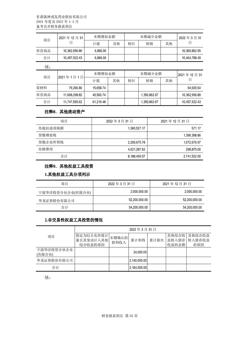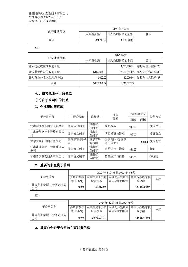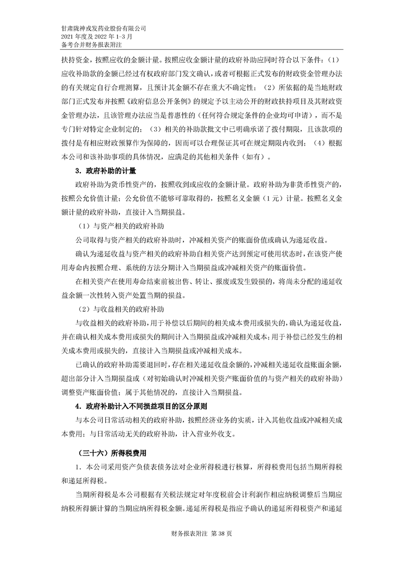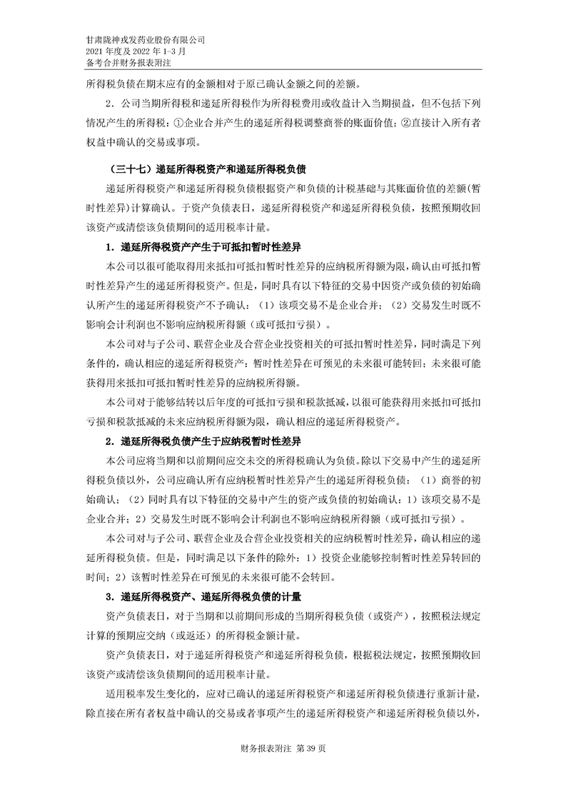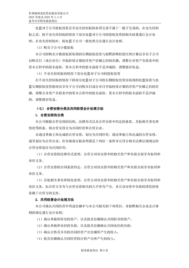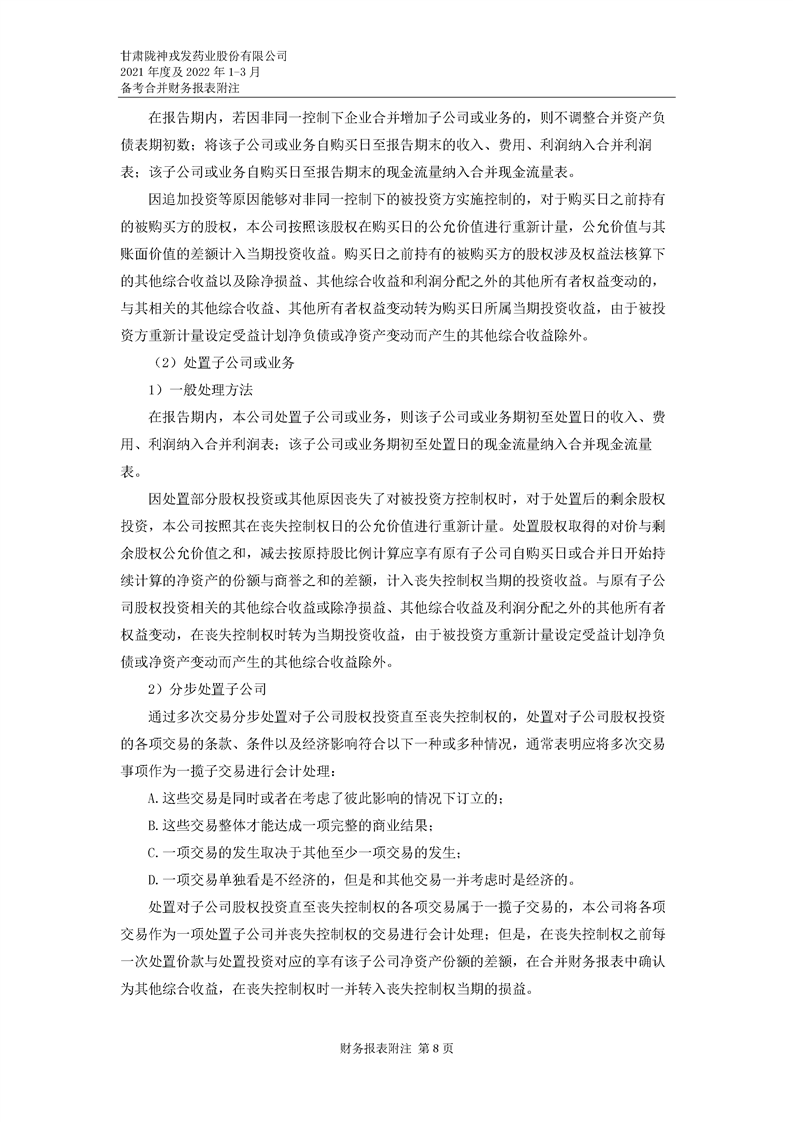 甘肅隴神戎發(fā)藥業(yè)股份有限公司備考財務報表審閱報告