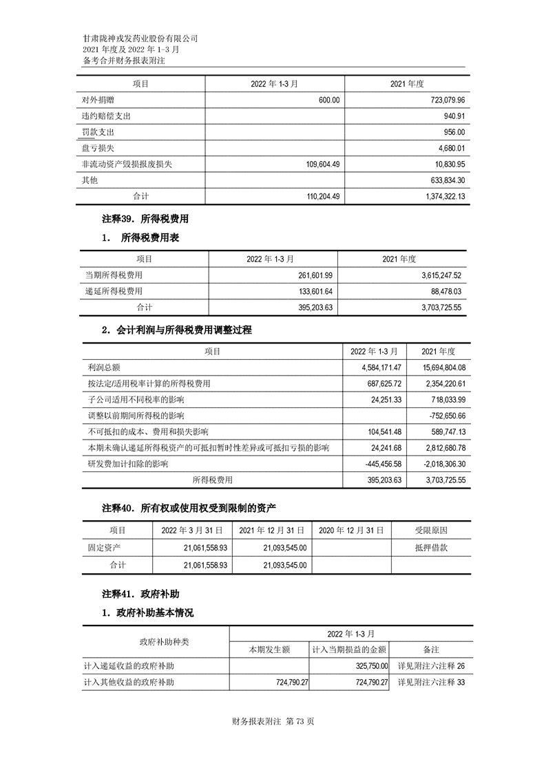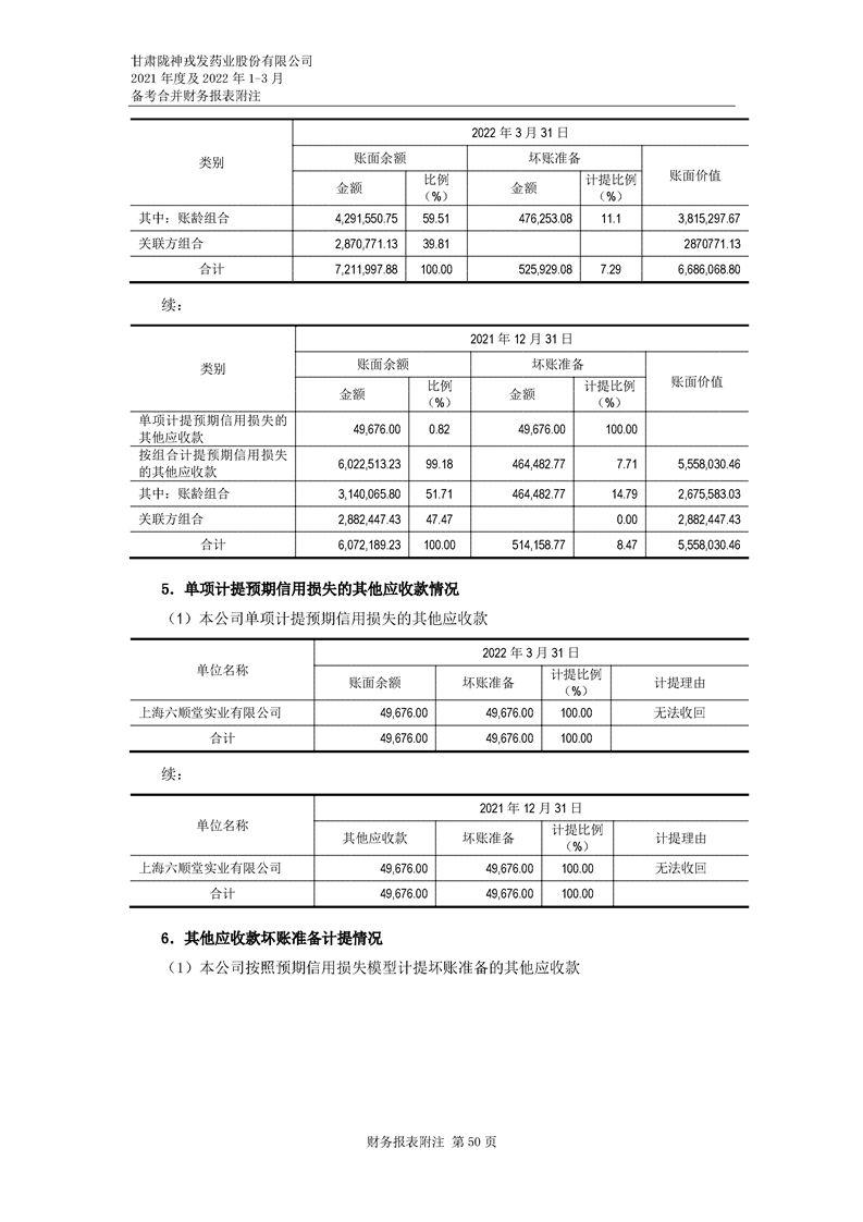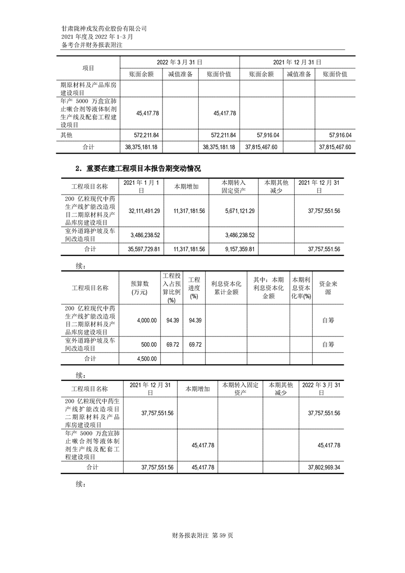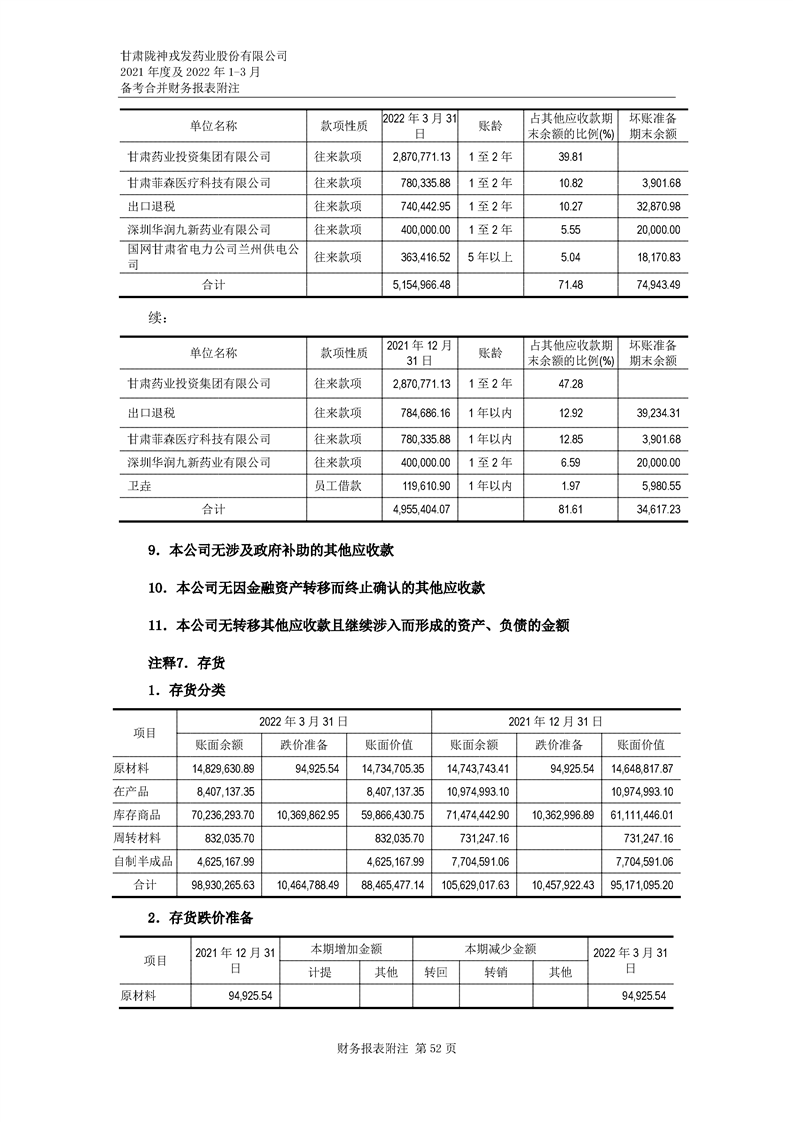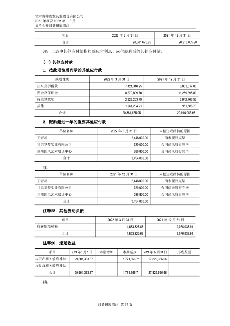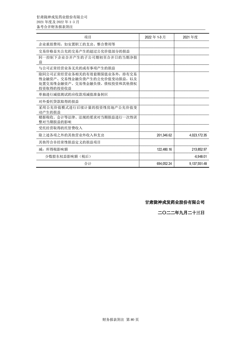 甘肅隴神戎發(fā)藥業(yè)股份有限公司備考財務報表審閱報告