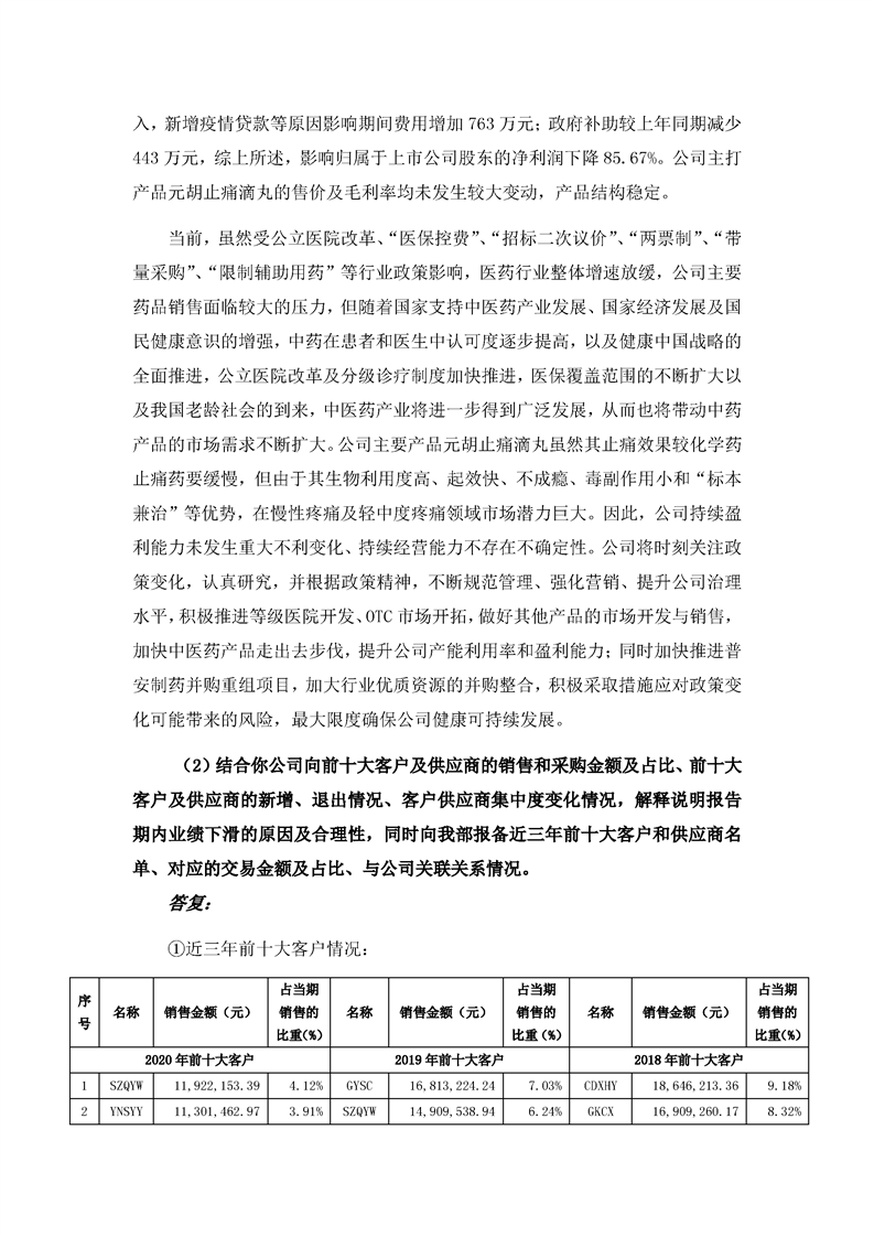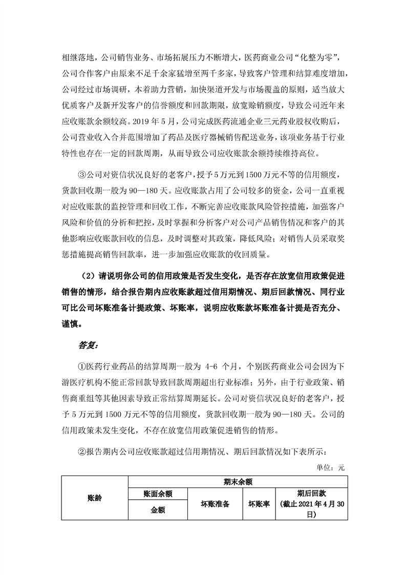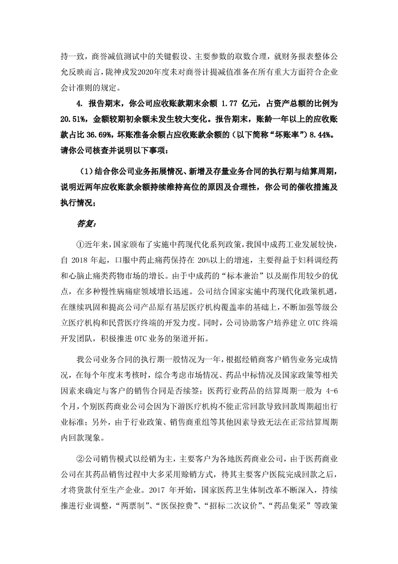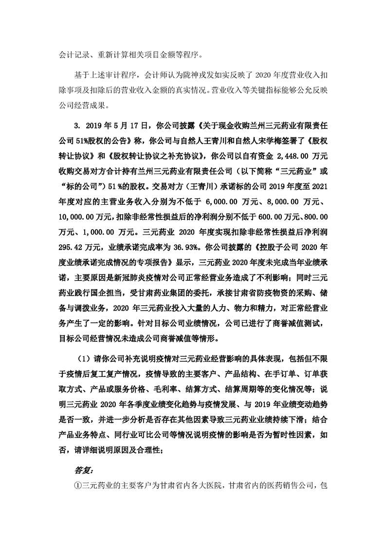 關(guān)于對(duì)深圳證券交易所2020年年報(bào)問詢函的答復(fù)公告