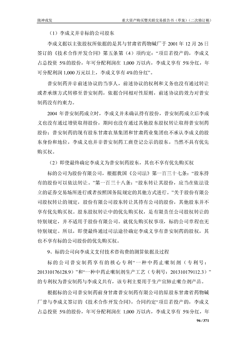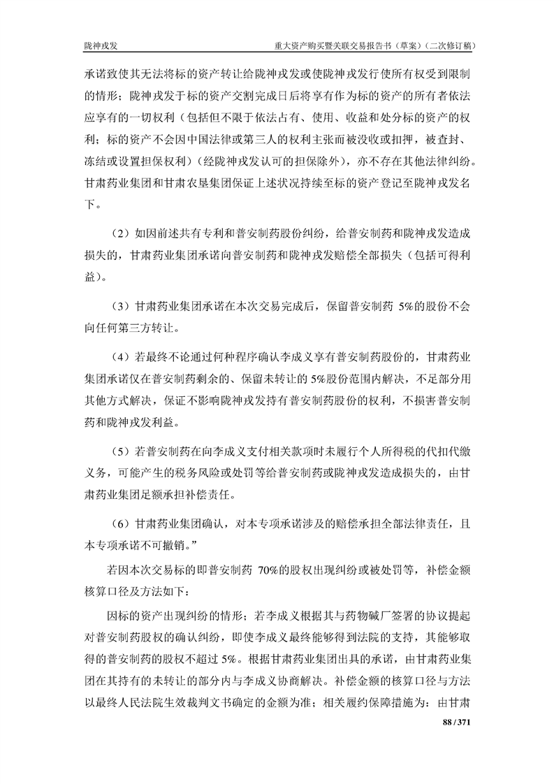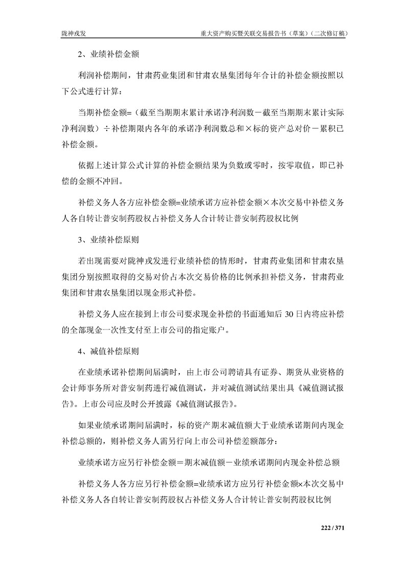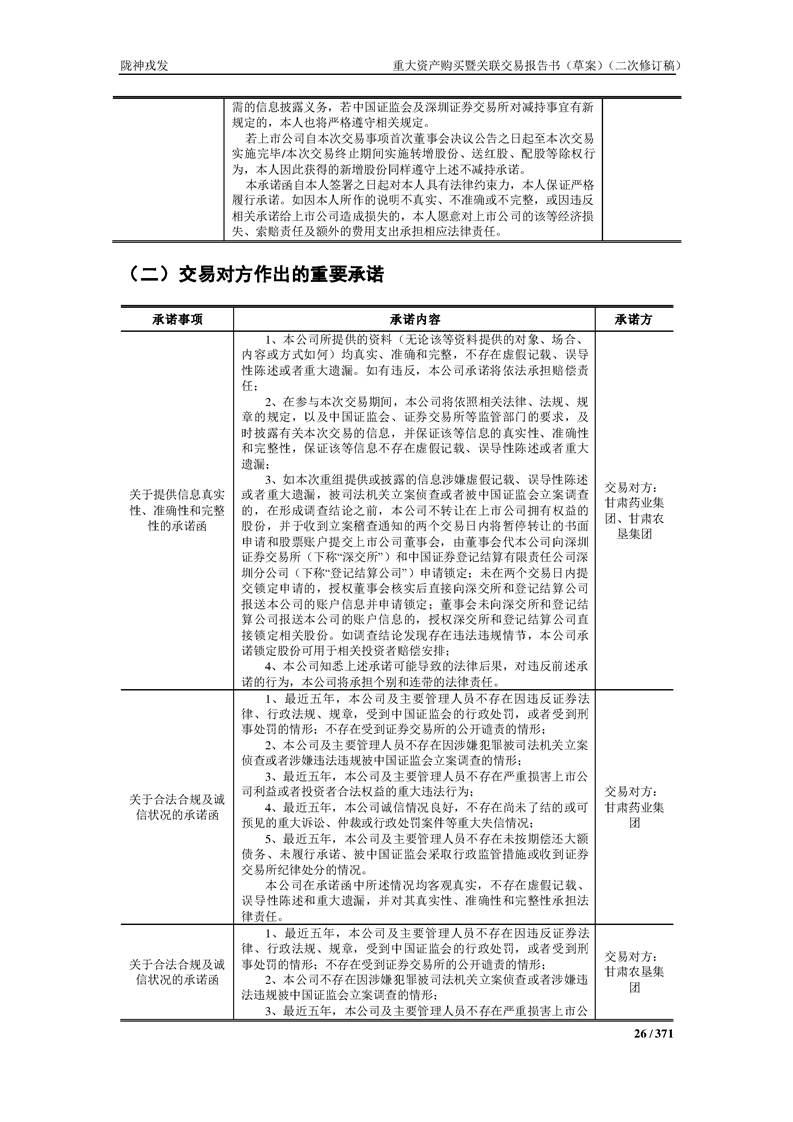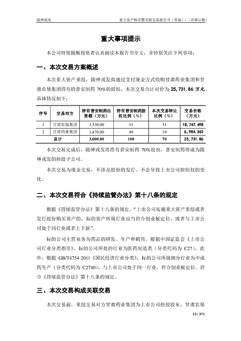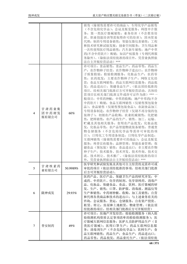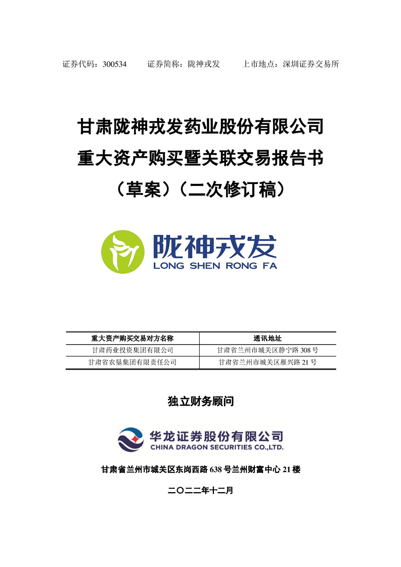 甘肅隴神戎發(fā)藥業(yè)股份有限公司重大資產(chǎn)購買暨關(guān)聯(lián)交易報告書(草案)摘要(二次修訂稿)